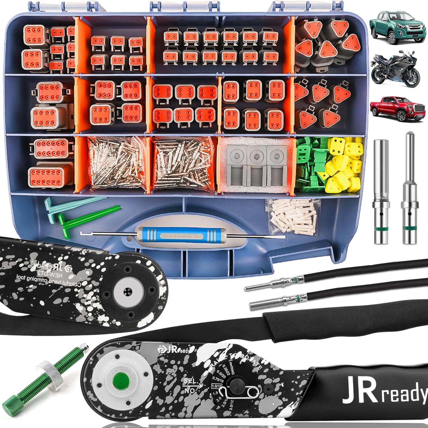 Kit de Conectores Deutsch JRready DW5007-02 – Conectores Elétricos Impermeáveis IP68 de 2, 3, 4, 6, 8 e 12 Pinos com Contatos Sólidos para Automóveis e Ferramenta de Crimpagem