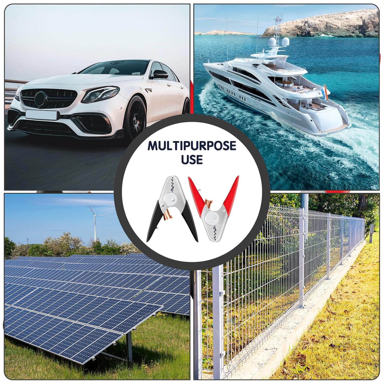 Esses clamps são multifuncionais, ideais para conectar baterias de automóveis, barcos, painéis solares e cercas elétricas. Além disso, são perfeitos para a fabricação e reparo de cabos de partida, oferecendo uma solução prática e econômica para suas necessidades.