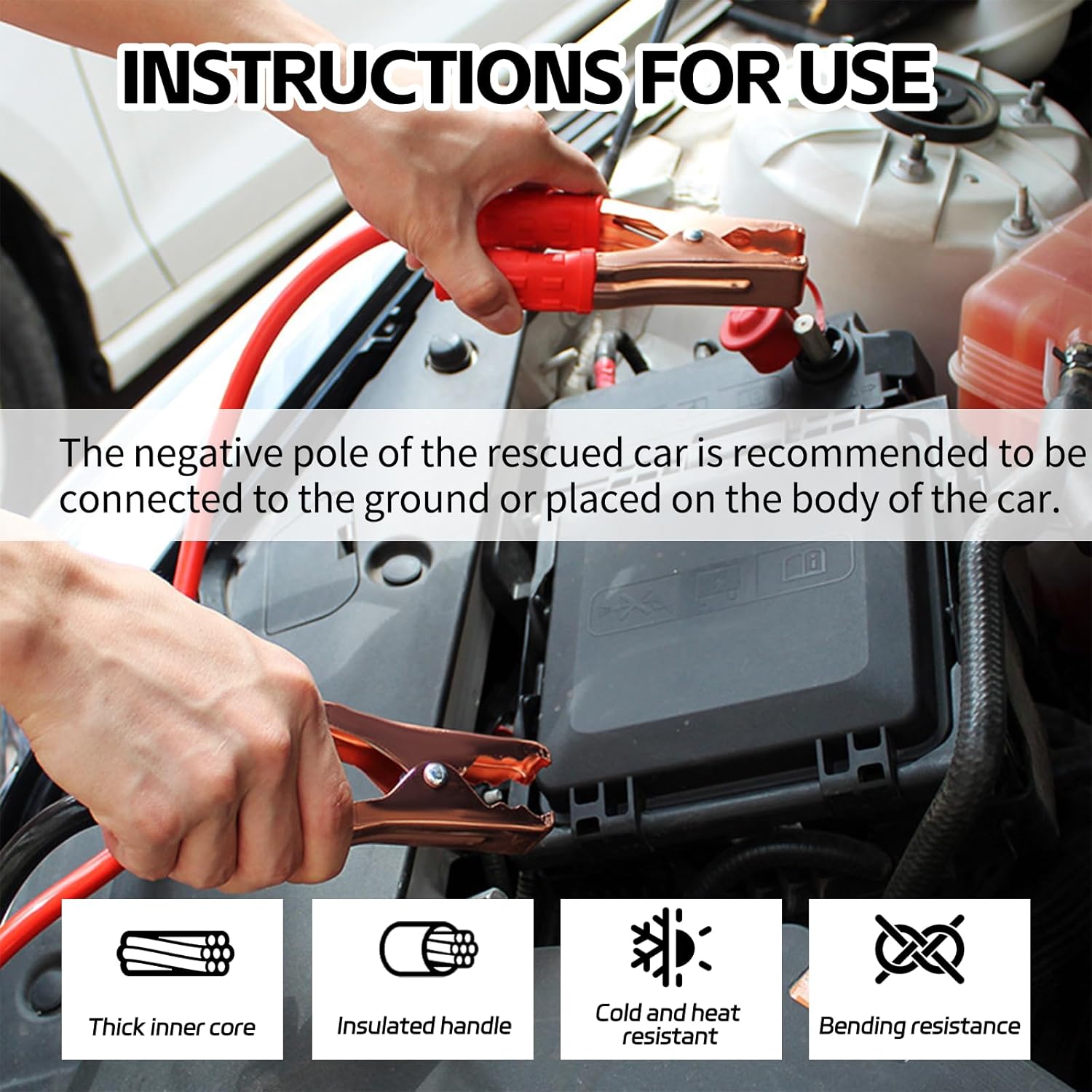 Dicas Importantes: Antes de usar, certifique-se de que ambos os veículos possuem a mesma voltagem. Desligue o motor, o som, o ar-condicionado e outros equipamentos de ambos os carros antes de conectar os cabos. Verifique também as instruções de conexão e desconexão na página de descrição.