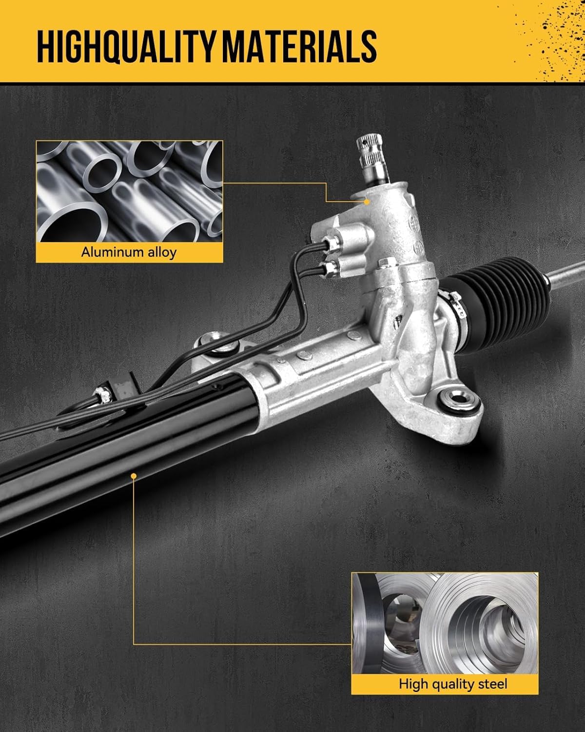 [PROFISSIONALMENTE FABRICADO]: O sistema de engrenagem helicoidal do rack e pinion é produzido com alta precisão através de usinagem CNC, garantindo verticalidade superior. Isso resulta em uma operação mais suave do volante e maior segurança na condução. O sistema de direção é integrado ao chassi do veículo, minimizando ruídos e vibrações indesejadas.