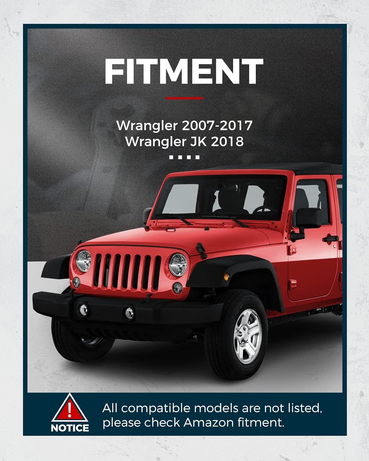 – Compatibilidade: Projetado para Jeep Wrangler 2007-2017 e Wrangler JK 2018-2018.