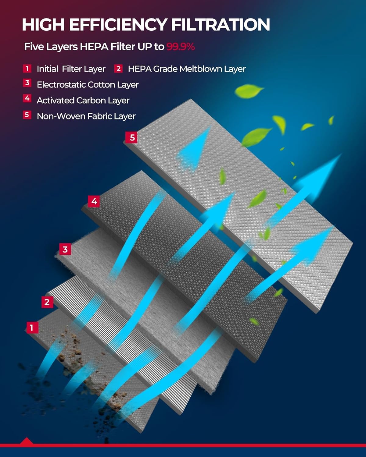 – Taxa de Purificação de 99,9%: Composta por algodão eletrostático de longa fibra, carvão ativado e tecido químico, a KAX Cabin Air Filter é capaz de absorver pólen, poeira, fuligem e outras partículas pequenas, proporcionando um ar mais limpo e saudável para os ocupantes do veículo.