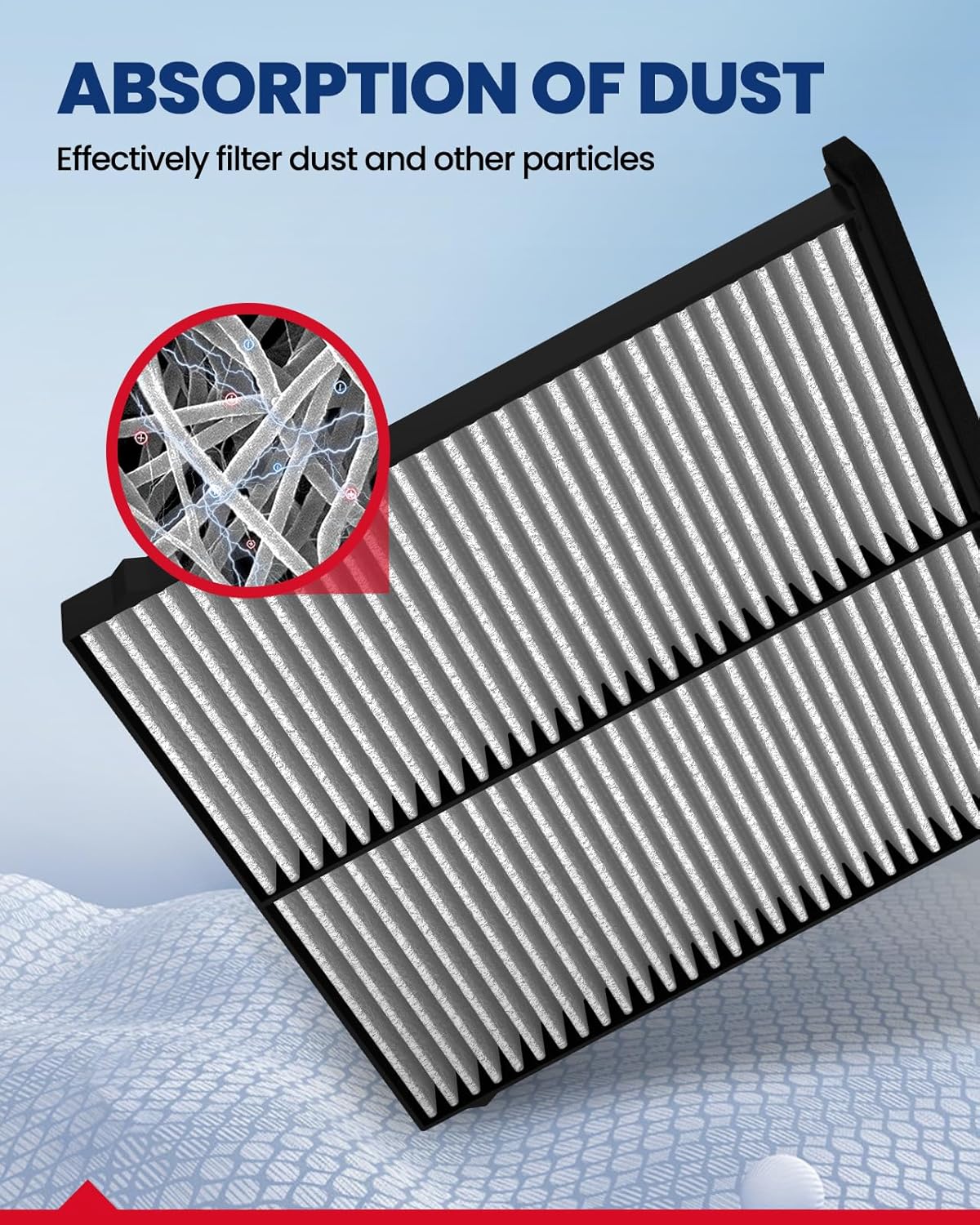 Com um fluxo de ar aumentado, o filtro KAX melhora o desempenho do sistema de ar condicionado, otimizando a eficiência de aquecimento e resfriamento a bordo. Ele também previne a formação de cheiros estranhos dentro do veículo, garantindo uma experiência de condução mais agradável. A camada de algodão eletrostático de longa fibra do filtro captura partículas pequenas de 0,1 a 0,3 micrômetros, aderindo firmemente à superfície do tecido e criando um ambiente interno confortável e saudável.