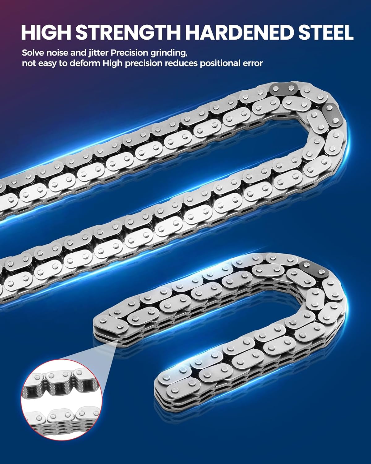 O KAX Engine Timing Chain Kit é a solução ideal para quem busca manter o desempenho e a eficiência do motor de veículos como o F150 (2004-2008), Expedition (2005-2008), F250 Super Duty (2005-2008) 5.4L, Navigator (2005-2008), Mark LT (2006-2007) e F350 Super Duty (2005-2008) 5.4L. Este kit é projetado para garantir uma conexão perfeita entre o virabrequim e o comando de válvulas, assegurando que os pistões e válvulas operem em sincronia adequada. Isso não apenas melhora o funcionamento do motor, mas também otimiza a eficiência do combustível, resultando em um desempenho superior.