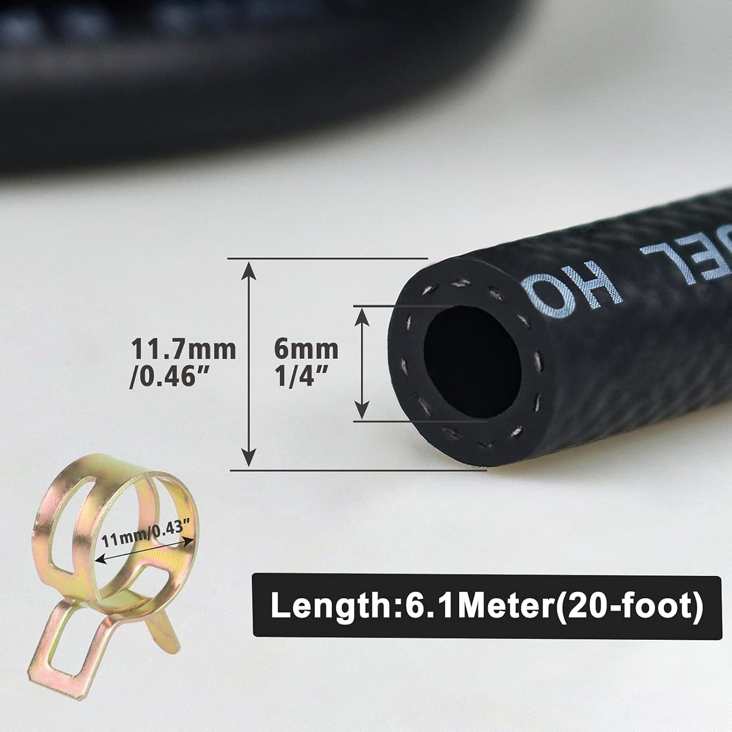 A mangueira de combustível KeeYees de 1/4″ID e 20 pés é a escolha perfeita para quem busca eficiência e confiabilidade em sistemas de transporte de combustíveis. Com um comprimento generoso de 20 pés (6,1 metros), esta mangueira pode ser facilmente cortada para atender a diferentes necessidades, garantindo um ajuste ideal para uma variedade de aplicações, desde motocicletas e carros até cortadores de grama e motores de barcos. O pacote inclui 30 grampos de mangueira de alta qualidade, que asseguram uma fixação segura e previnem vazamentos indesejados.