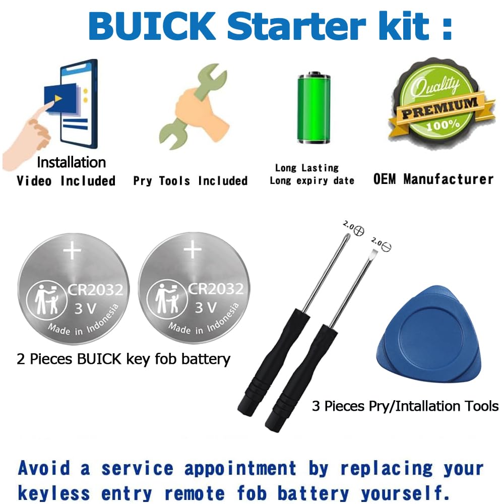 A substituição da bateria do seu chaveiro remoto Buick nunca foi tão fácil e acessível. Este pacote inclui duas (2) baterias CR2032 de alta qualidade, juntamente com ferramentas de abertura e remoção, totalizando cinco peças. É importante ressaltar que o chaveiro remoto não está incluído, mas a praticidade e a eficiência deste produto são inegáveis. Com a qualidade genuína das baterias OEM fornecidas pelo fabricante, você pode ter certeza de que está utilizando as mesmas baterias que vêm com os chaveiros inteligentes originais.