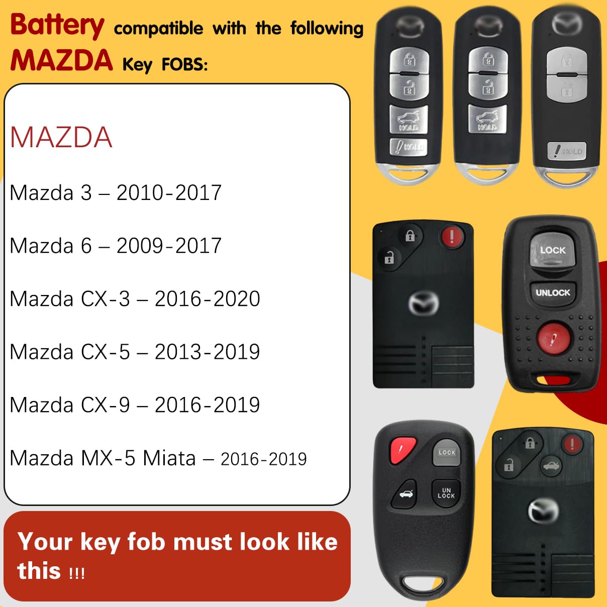 As baterias de substituição para chaveiro Mazda são a solução ideal para garantir que seu veículo permaneça sempre acessível e funcional. Este pacote contém (2) baterias premium IYUKETROR CR2025 de 3V, projetadas especificamente para os modelos Mazda de 2009 a 2020, incluindo Mazda 3, 6, CX-3, CX-5, CX-9, MX-5 Miata, Yaris IA e Scion. Com a inclusão de uma ferramenta de abertura de dupla função, você pode substituir a bateria do seu chaveiro sem arranhar ou danificar a carcaça do controle remoto.