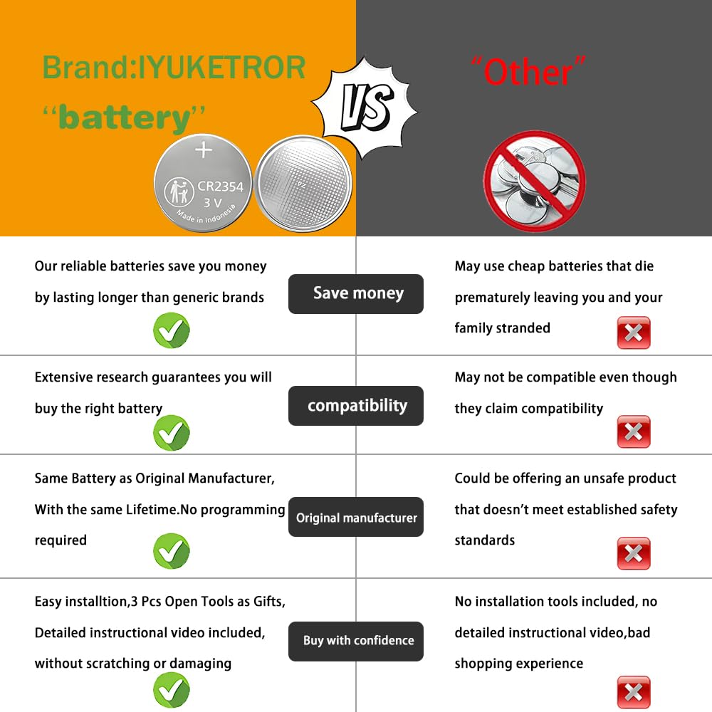 I was slightly surprised by the price of this new order, but in the end, I was not disappointed. Let me explain why. It is, of course, a standard CR2354 battery, and, as expected, it is from an unknown brand. However, when I received the package, I understood what the deal was. This order includes not only the battery itself but also two small screwdrivers (one cross-head and one flat) and a trimming tool that allows me to open the key fob without damage. You see, this was not my first battery replacement, and the first time I tried to open the key fob, I scratched it badly using a regular metal screwdriver. The plastic trimming tool, however, allows me to do this without leaving any scratches on the key’s body. Also, the two small screwdrivers helped me dismantle the protective cover I use. As for how long the battery will last, only time will tell. It’s been a week since I replaced it, and my key fob works at a sufficiently long distance from the car, just like with any other batteries, including brand-name ones.