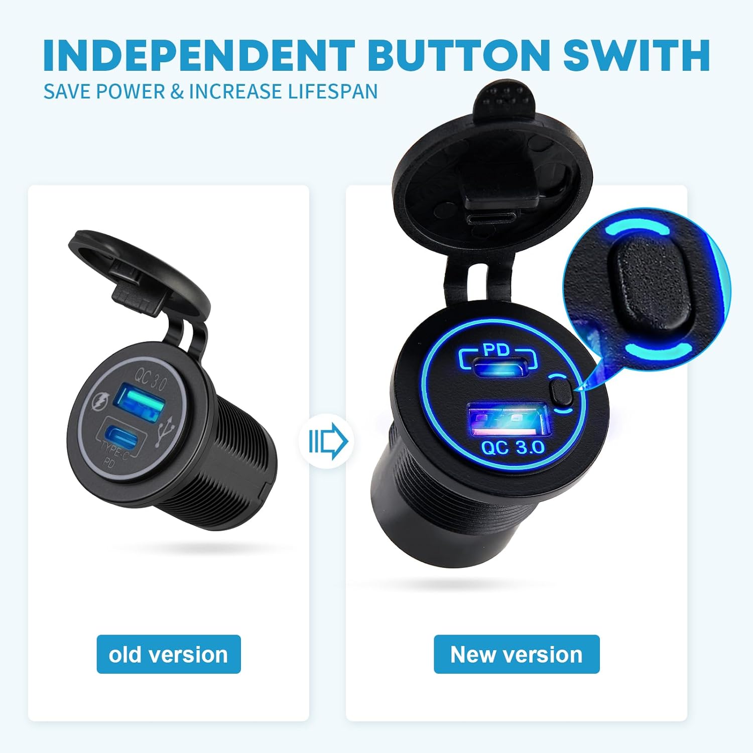 I like that this 12V socket & USB outlet has a switch to turn off when not needed!