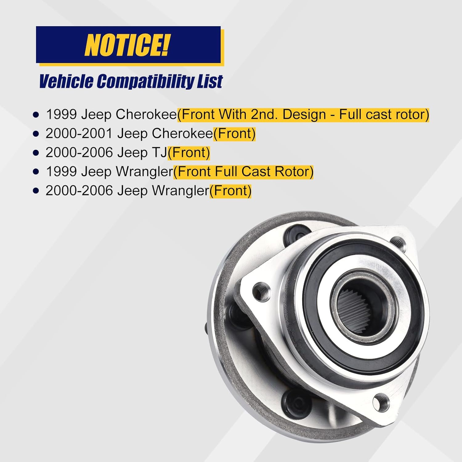 1 avaliação para KUSATEC 513158 – Conjunto de Rolamento e Cubo de Roda Dianteiro 2 Peças Compatível com Jeep Cherokee TJ e Wrangler 1999-2006, 5 Parafusos sem ABS