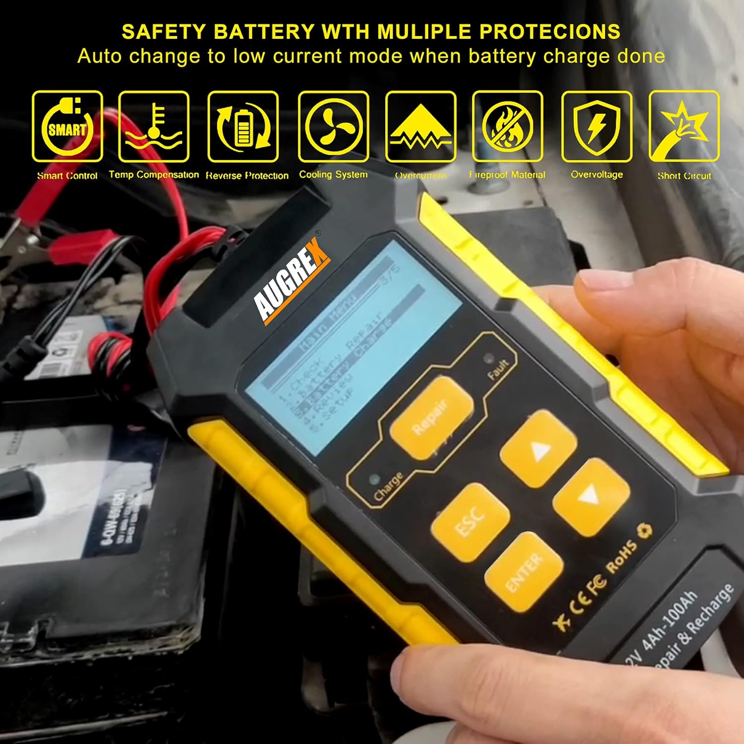 Além de suas funções de teste, o KW510 também é um carregador de bateria totalmente automático, capaz de carregar baterias com voltagem tão baixa quanto 2 volts, com uma saída máxima de 12 volts e 5 amperes. O carregador não apenas recarrega as baterias, mas também utiliza a mais recente tecnologia de reparo por pulso, permitindo a detecção automática de sulfatação e estratificação de ácido, restaurando a performance das baterias e trazendo-as de volta à vida com um simples toque de botão.