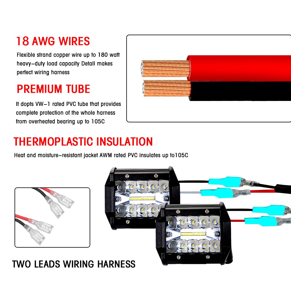 Equipado com relés e fusíveis de alta corrente, o kit é projetado para ser seguro e confiável. Ele suporta luzes de trabalho LED com potência entre 10W e 480W, garantindo que você tenha a iluminação necessária para qualquer situação. Os cabos são feitos de cobre de alta qualidade e possuem isolamento à prova d’água, aumentando a durabilidade do produto.