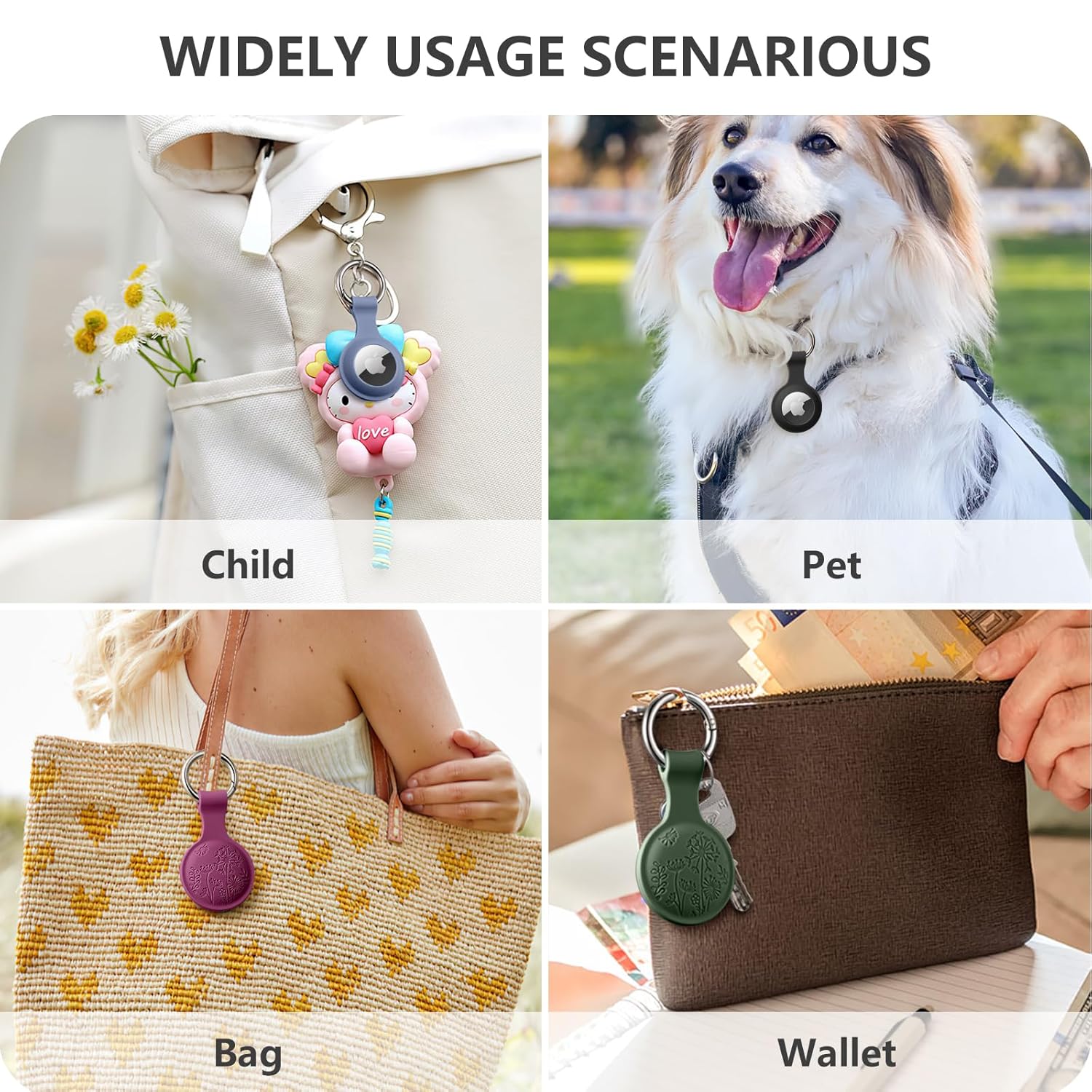 We keep an air tag on our kids whenever we go to theme parks and our little one actually likes wearing it clipped to her jeans when she goes to school. It’s reassuring to her and the cute little design along with the cool colors speaks to the younger kids. I used the black one for my purse and have no complaints. We’ve been using them for several months and so far, they are holding up well. The silicone does not appear to be showing stress where the ring is. I’d definitely recommend.