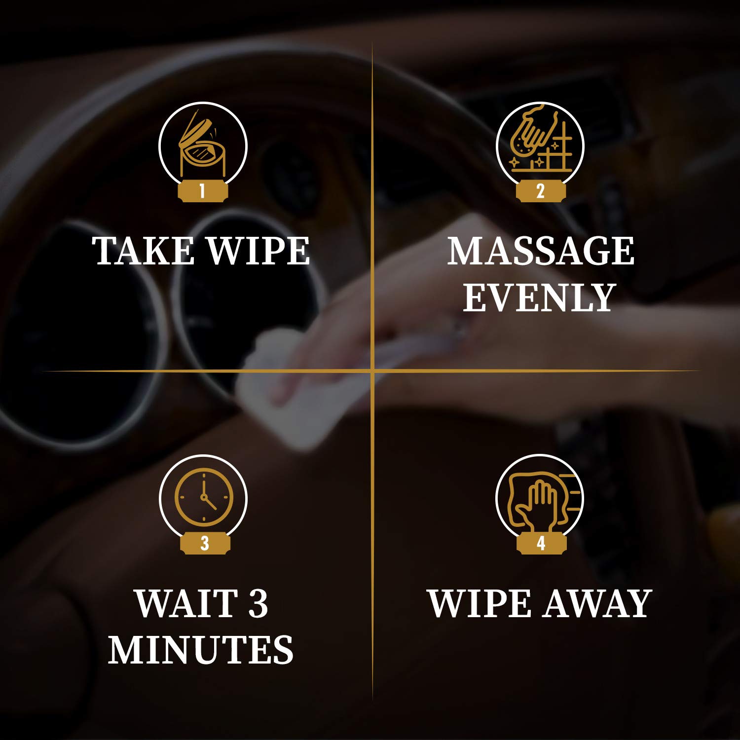 Para utilizar o Lexol All Leather Quick Care All-in-One Formula, retire um lenço da embalagem e passe-o suavemente sobre a superfície do couro que deseja tratar. Certifique-se de cobrir toda a área, aplicando uma pressão leve e uniforme. Para áreas mais sujas ou manchadas, repita a aplicação conforme necessário. Após o uso, feche bem a embalagem para manter a umidade dos lenços. É recomendável testar o produto em uma área discreta antes da aplicação completa, especialmente em couro de cores claras ou tingido.