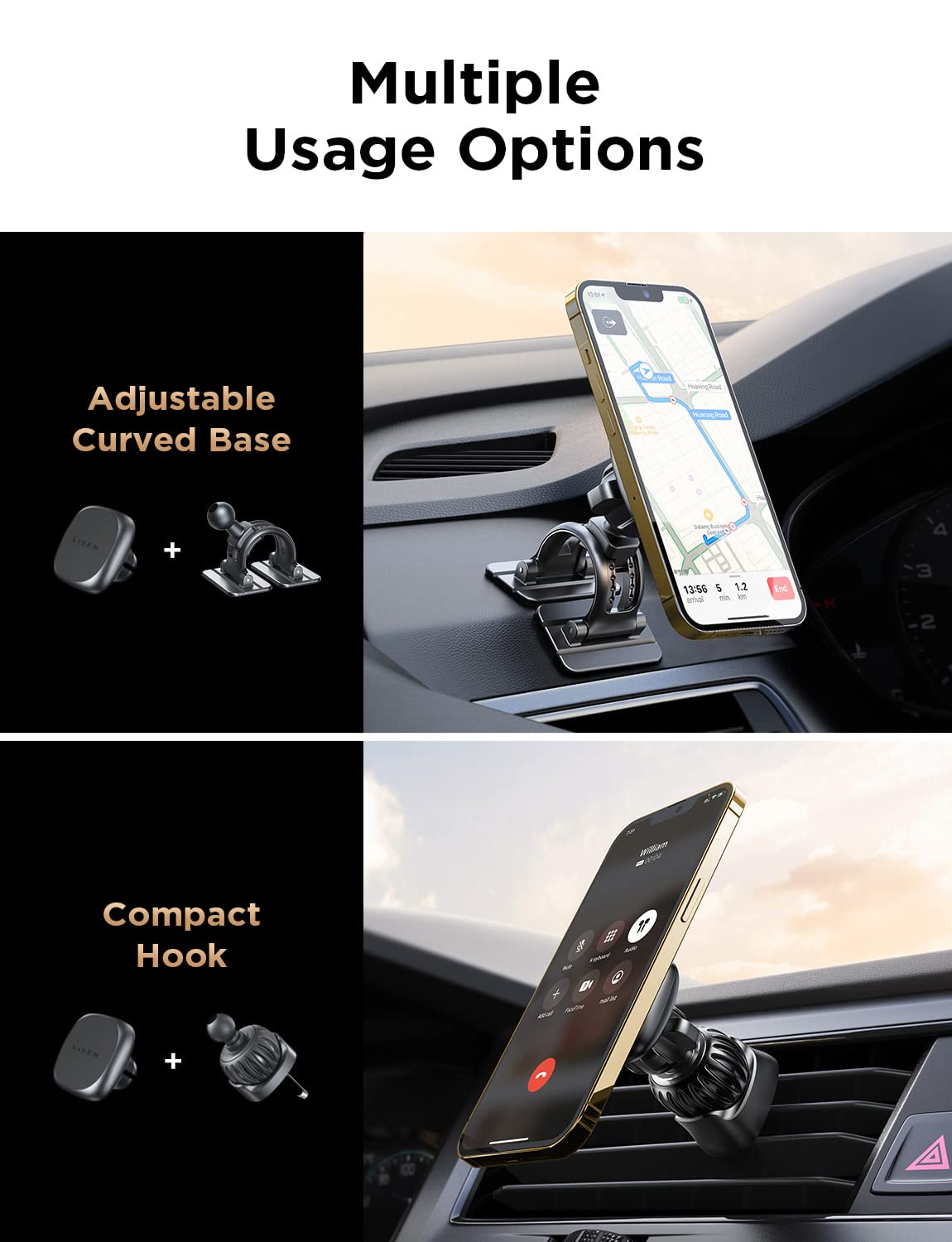 I have tried so many phone holders and either they break or they don’t hold. I bought this knowing I would only use air vent holder. It hugs the vent and doesn’t move!!! It is extremely secure and the magnet that I already had on the back of my phone case works great with the magnet on the holder. Super strong!!
