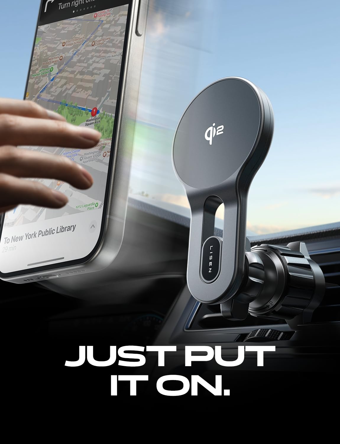 O LISEN para Qi2 15W MagSafe Car Mount Charger é a solução definitiva para quem busca praticidade e eficiência no carregamento de dispositivos móveis enquanto dirige. Com a certificação Qi2, este carregador de carro magnético oferece tecnologia de carregamento rápido de 15W, especialmente projetado para o iPhone 16 Pro Max e outros dispositivos compatíveis. O upgrade de 2025 inclui um carregador de carro rápido de 48W, tornando-o um presente encantador para o Natal, ideal para compartilhar com familiares e amigos.