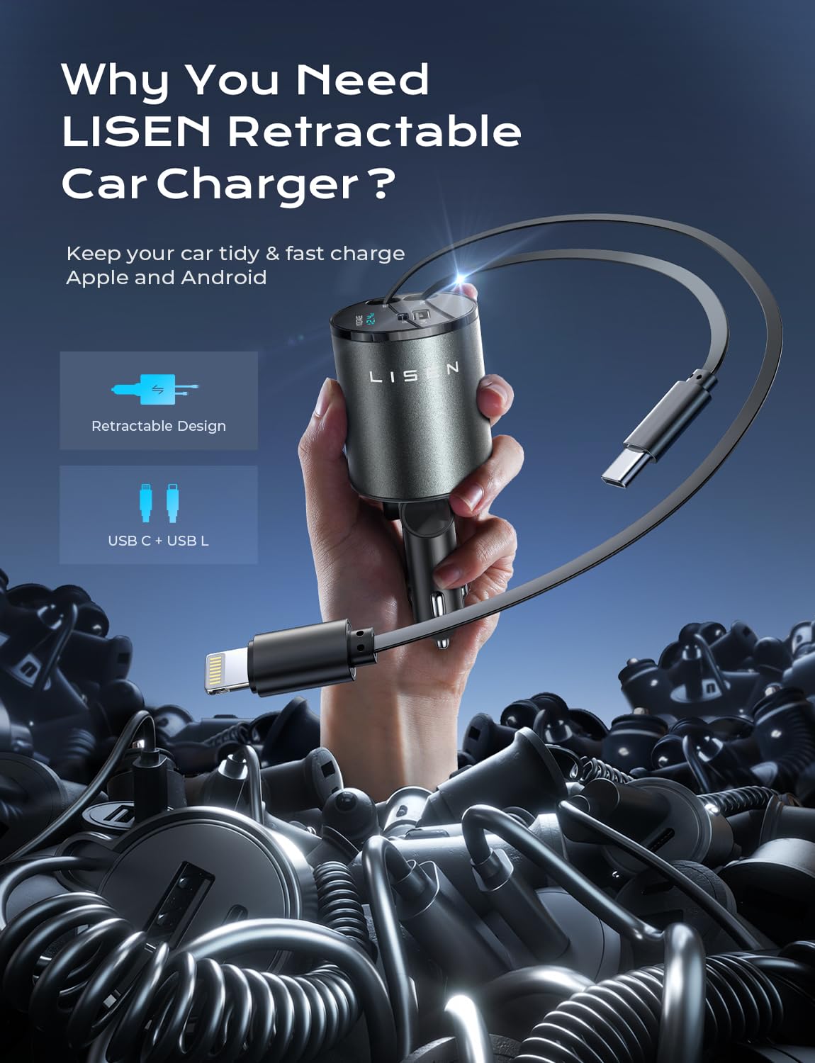 ### LISEN Car Charger Retrátil 69W: A Solução Definitiva para Carregamento em Veículos