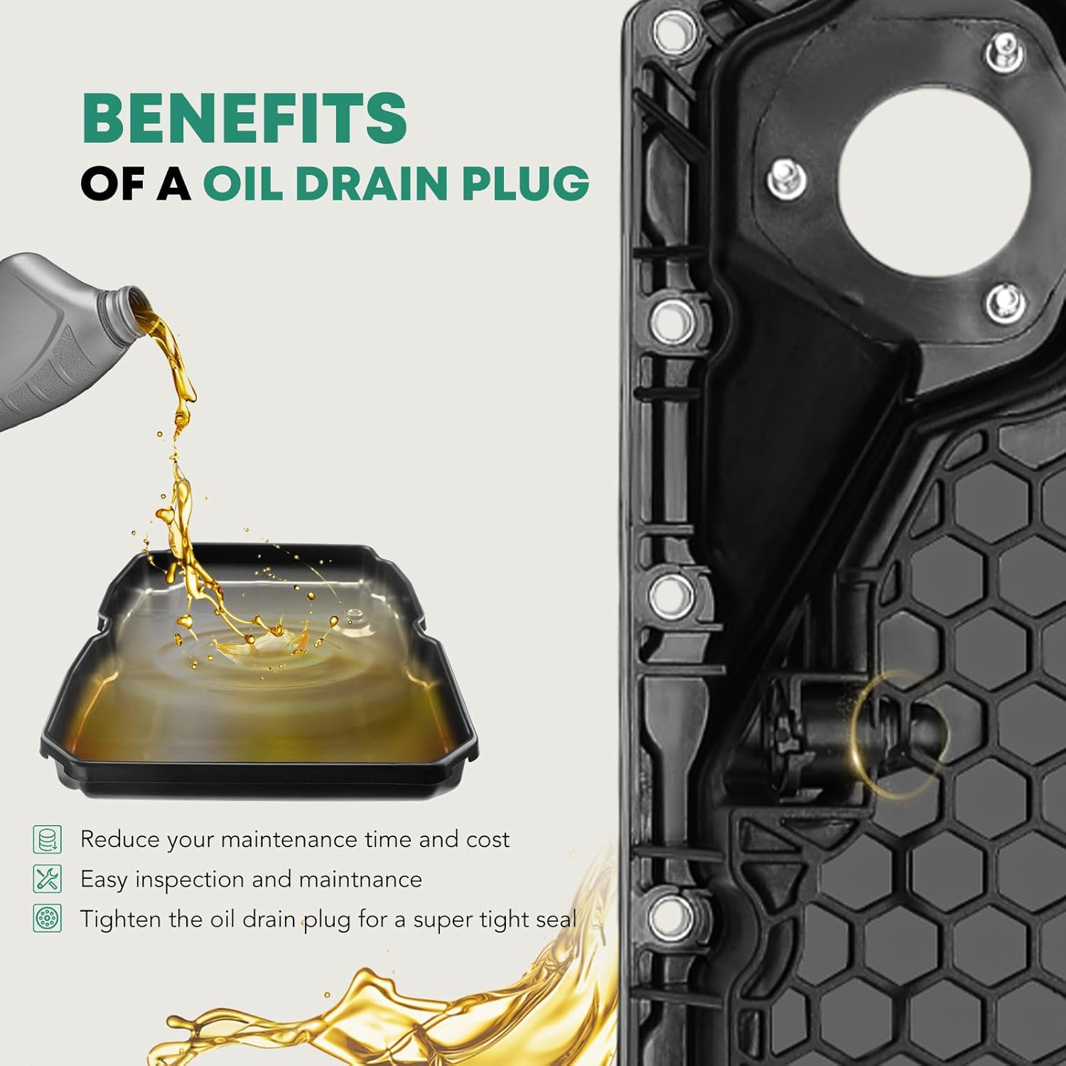 Resposta: Um cárter de óleo de alta qualidade ajuda a manter o motor saudável, reduzindo o risco de vazamentos e prolongando a vida útil do óleo do motor.