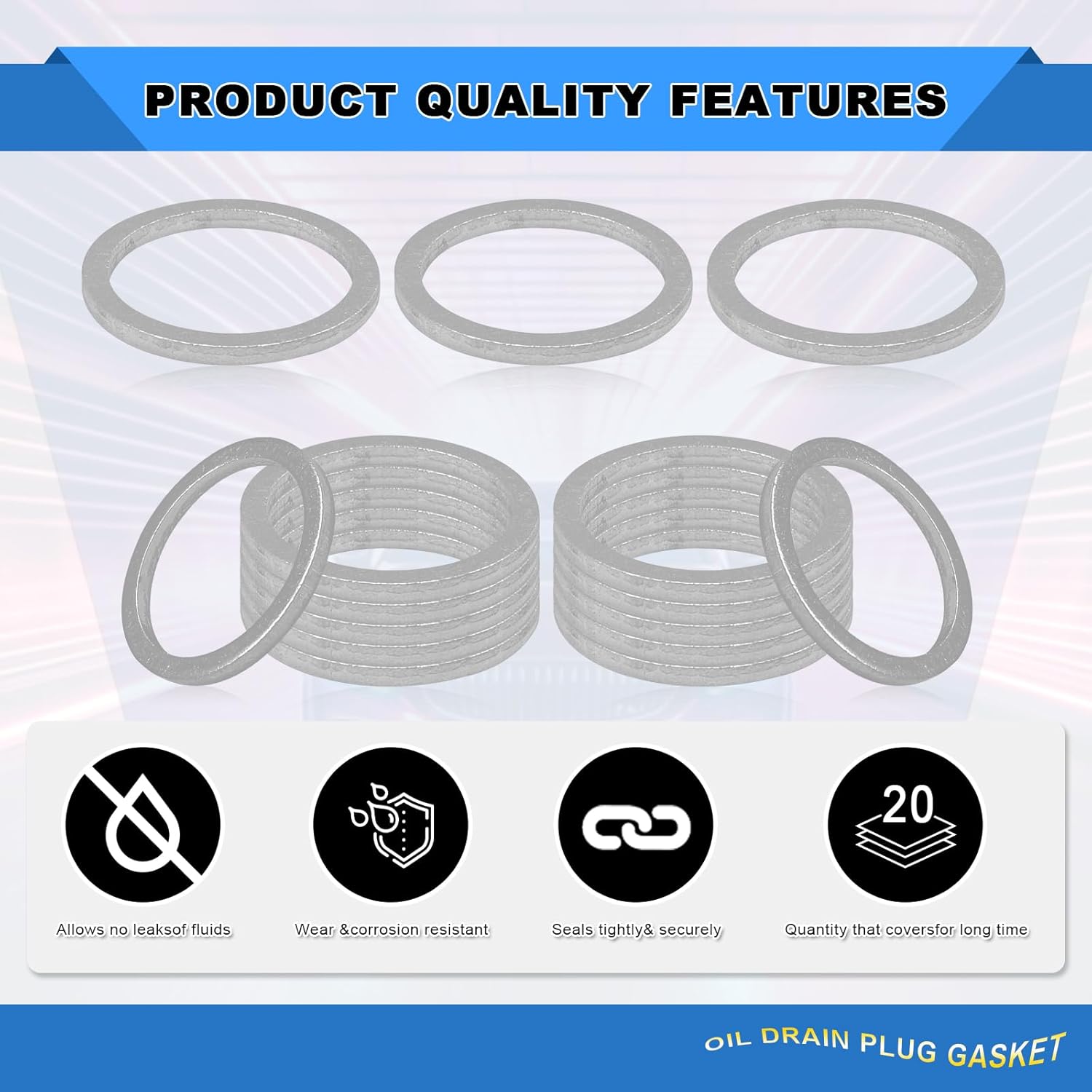 - Alta Qualidade: As washers para gaxetas de plugue de drenagem de óleo são fabricadas exclusivamente em alumínio de alta qualidade, garantindo maior durabilidade e resistência à corrosão. A superfície lisa da washer cria um vedação apertada, evitando qualquer tipo de vazamento.