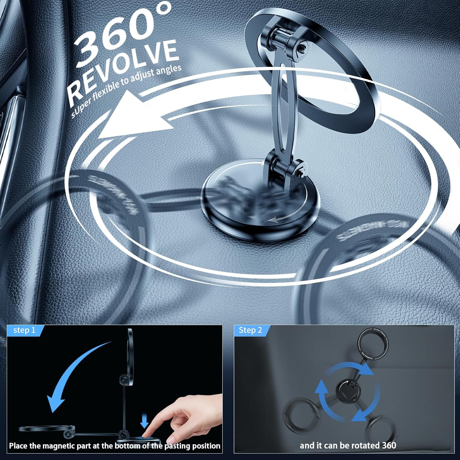 – 【Garantia de 1 Ano】 O suporte magnético para carro Mag-Safe possui um forte magnetismo que se alinha automaticamente ao seu iPhone, evitando quedas acidentais. Com uma base rotativa de 360 graus, você pode ajustar a posição conforme sua preferência. O suporte é robusto e fácil de instalar, mantendo-se firme mesmo em terrenos irregulares.