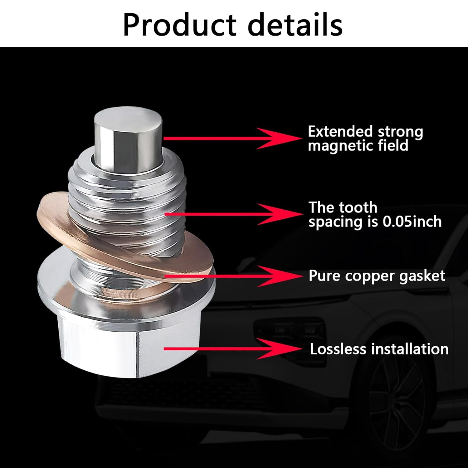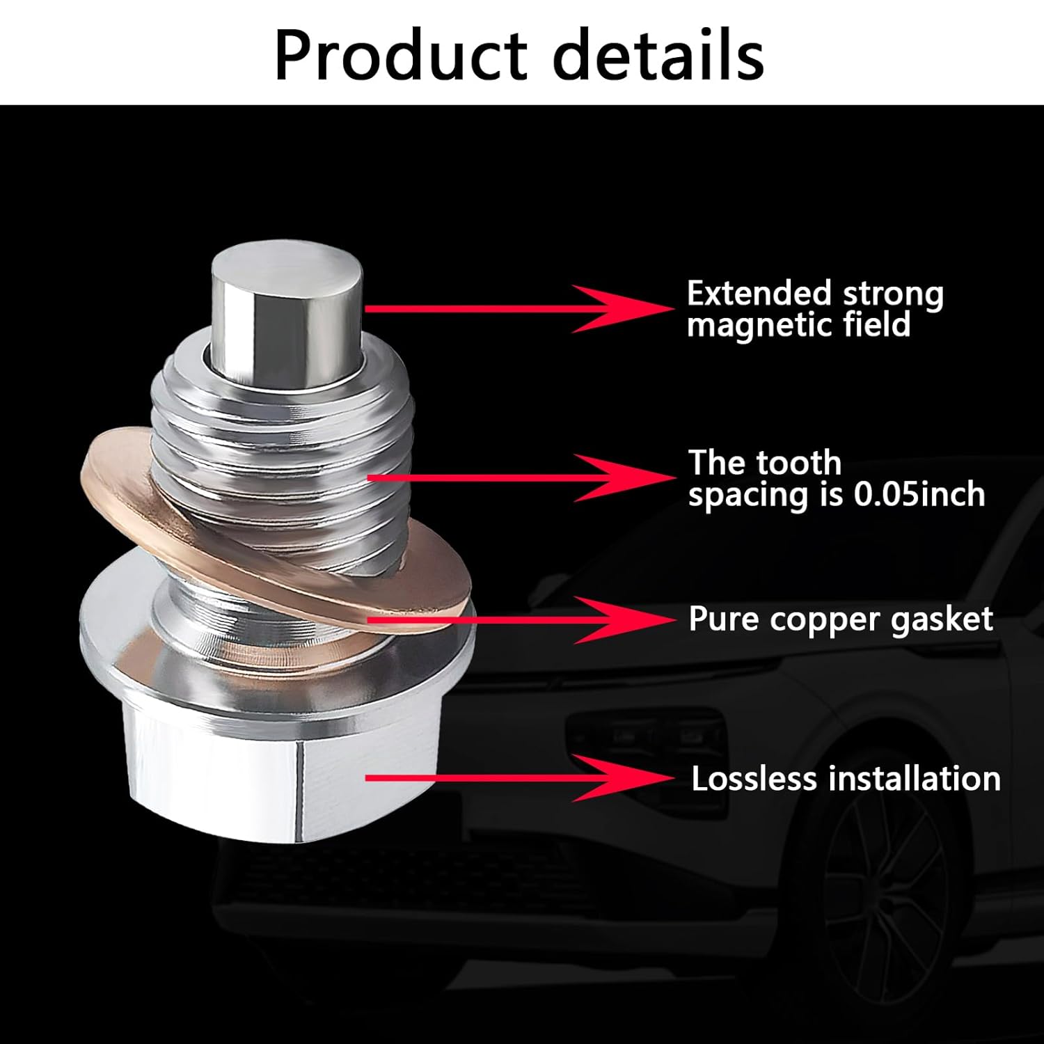 Equipado com imãs de neodímio de alta força, o plugue magnético possui uma força magnética de até 5000 gauss, permitindo que ele capture e mantenha firmemente qualquer metal coletado durante o uso. Essa característica é crucial, pois o magnetismo não é afetado por variações de temperatura, garantindo que os detritos sejam retidos até a próxima troca de óleo.