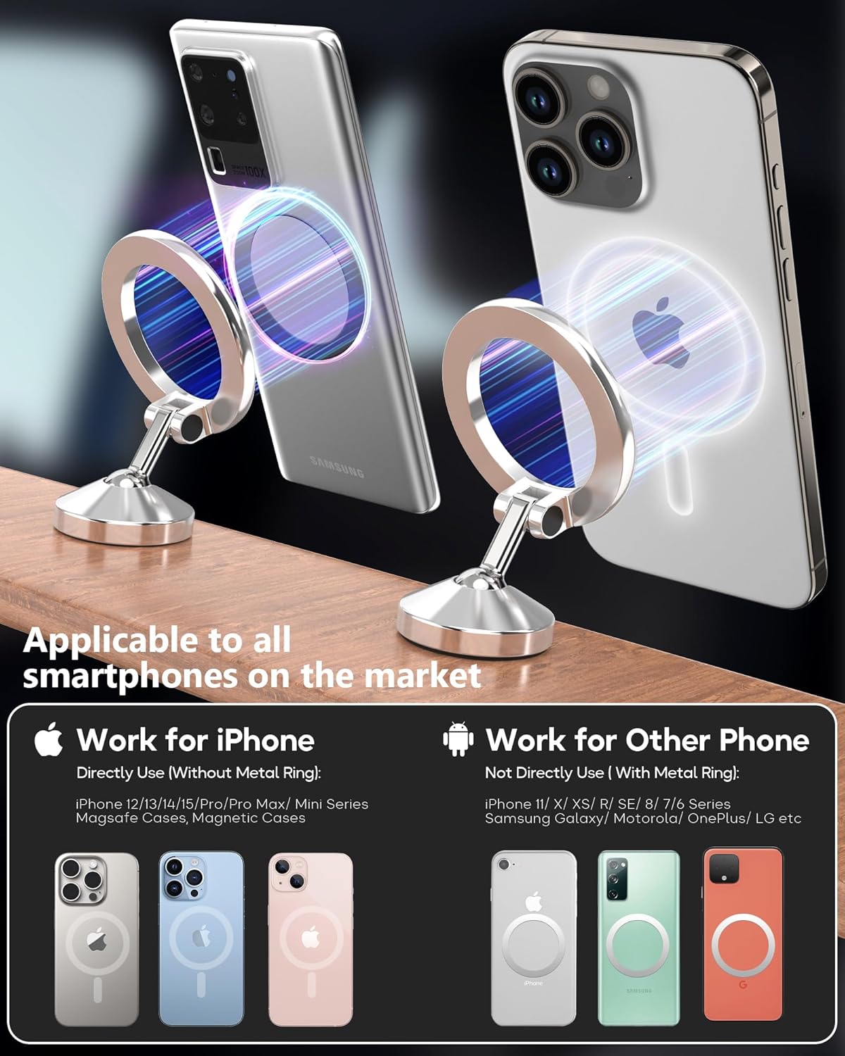 【Suitable for all mobile phones and mobile phone cases】 O suporte LOXP é compatível com todos os modelos de smartphones, incluindo as séries iPhone 15/14/13/12 e capas magnéticas. Para dispositivos que não possuem função magnética, um anel metálico pode ser utilizado para garantir uma fixação forte, sem interferir na carga sem fio e mantendo a recepção de sinal ininterrupta.