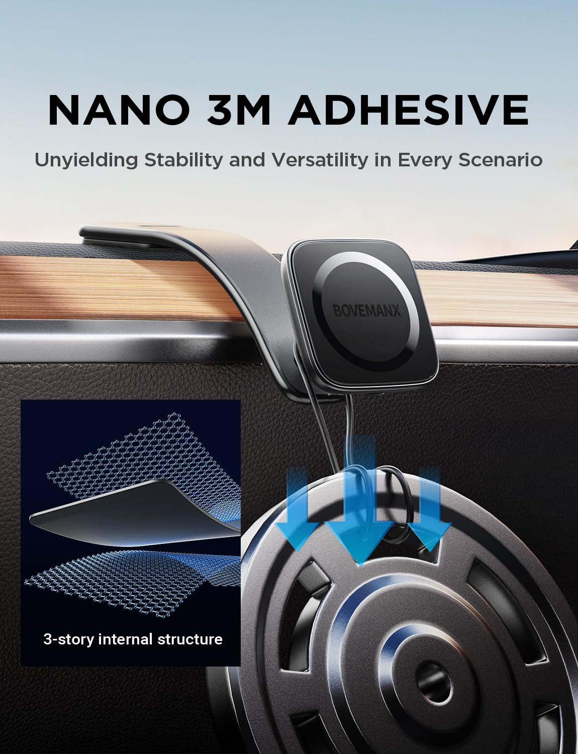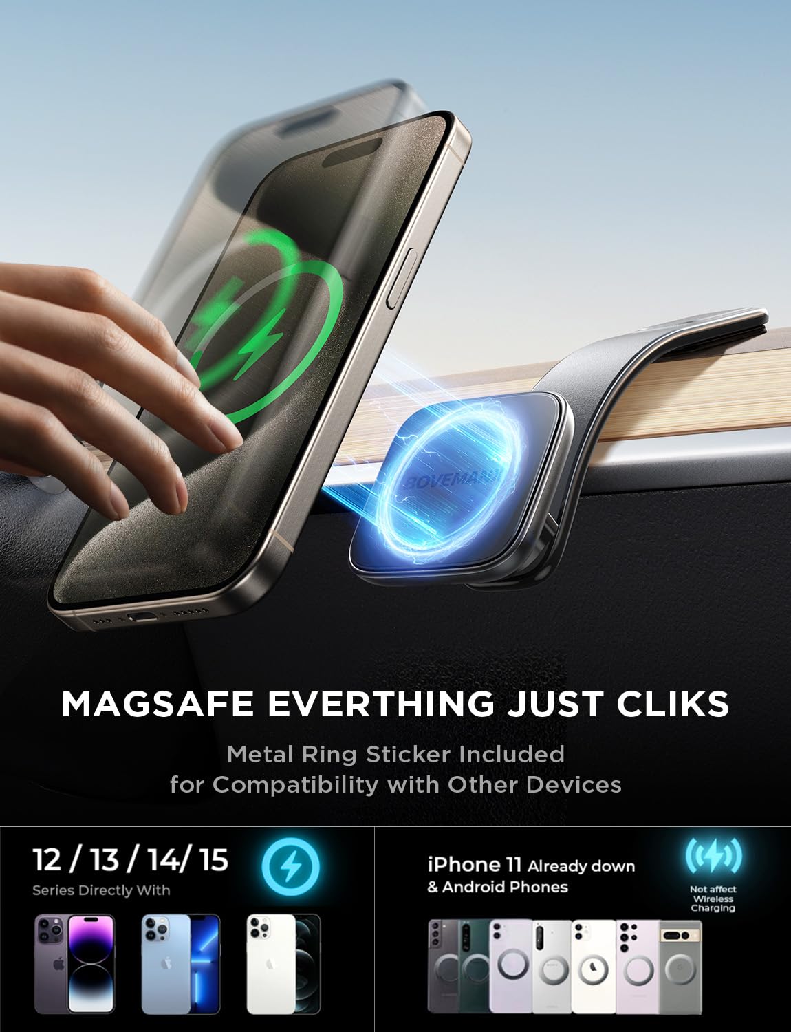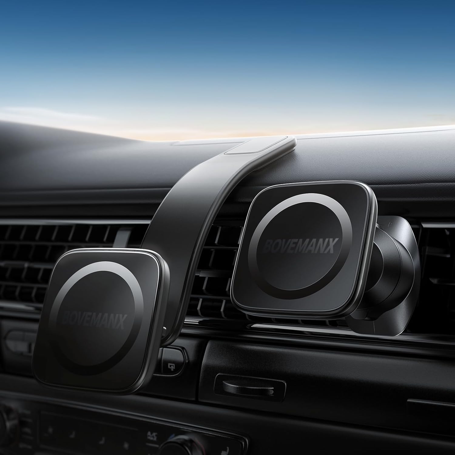 Descubra a liberdade de dirigir com o Suporte Magnético para Carro MagSafe, projetado especialmente para os modelos de iPhone 12 e superiores. Com a tecnologia de imãs Bovemanx N55H, este suporte oferece uma força de 8LB, garantindo que seu dispositivo permaneça seguro e estável, mesmo nas estradas mais desafiadoras. Para usuários de iPhones não compatíveis com MagSafe e modelos Android, um anel metálico adesivo é incluído para aumentar a atração magnética, proporcionando uma experiência de uso sem interrupções.