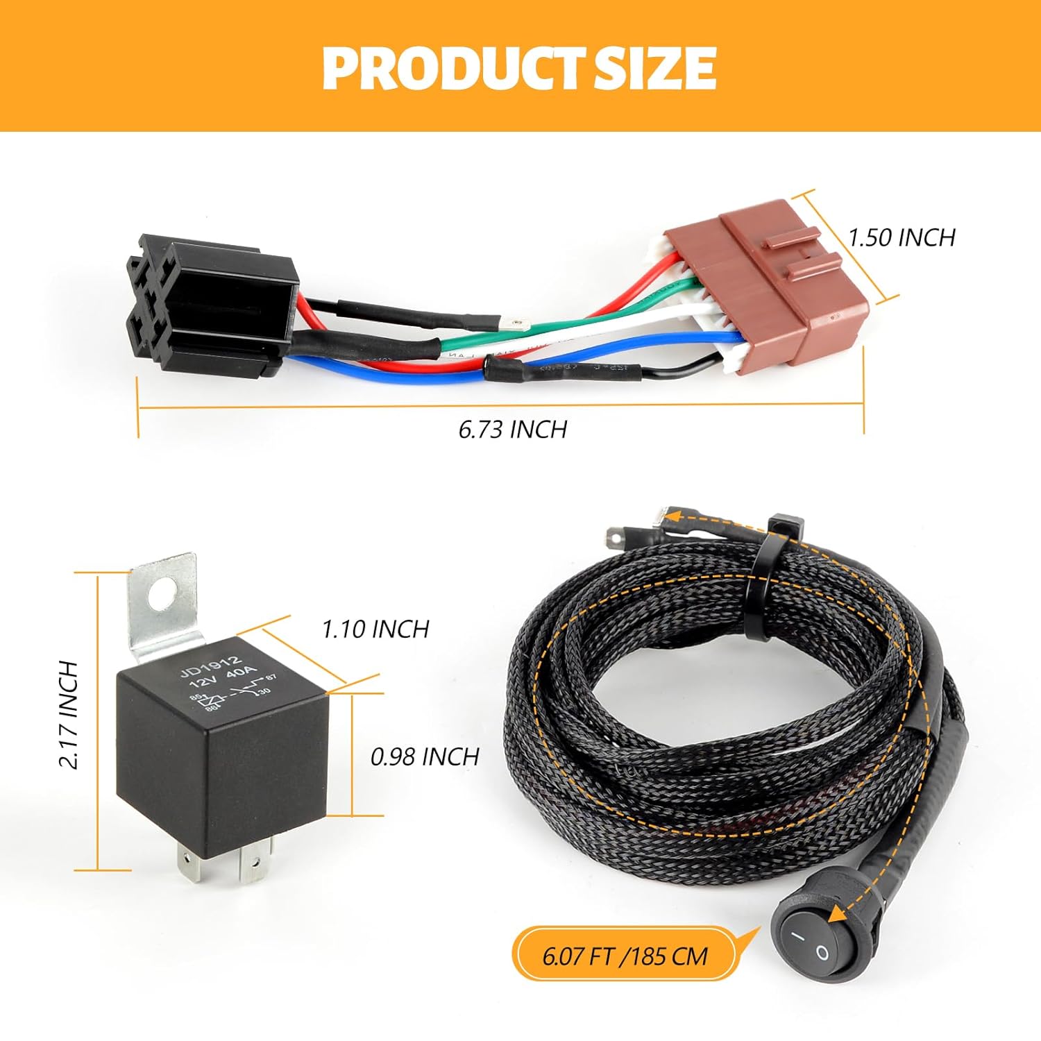 O design inovador do kit permite uma conexão organizada dos relés, facilitando a gestão dos cabos e garantindo uma instalação limpa e profissional. Os soquetes dos relés são equipados com fios coloridos, o que simplifica a identificação das cargas e acessórios durante a instalação. A concepção do plug elimina a necessidade de fiação manual, tornando o processo mais seguro e conveniente. O interruptor externo, com um cabo de 5,24 pés, pode ser posicionado em diversas localizações dentro do veículo, e quando desligado, impede a partida do carro, permitindo um controle eficaz do consumo de energia.