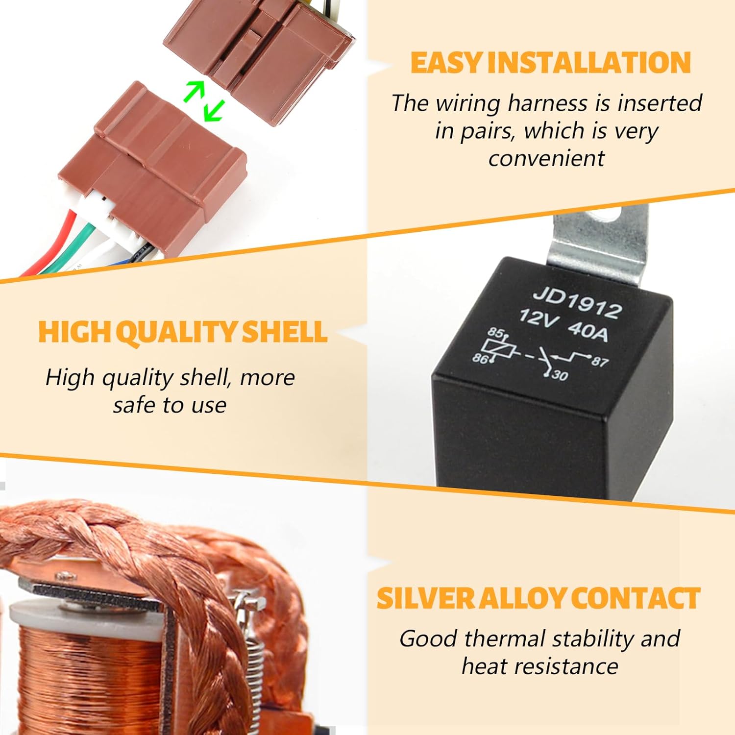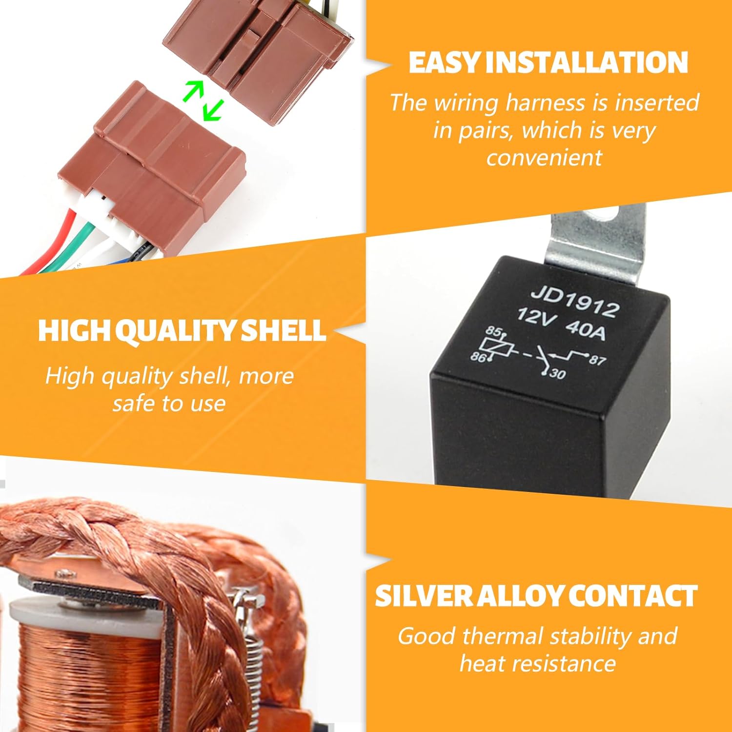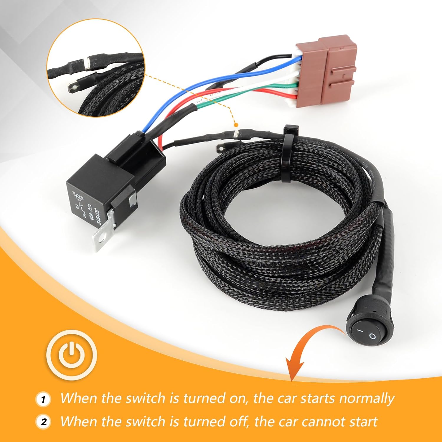 O design inovador do kit permite uma conexão organizada dos relés, facilitando a gestão dos cabos e garantindo uma instalação limpa e profissional. Os soquetes dos relés são equipados com fios coloridos, o que simplifica a identificação das cargas e acessórios durante a instalação. A concepção do plug elimina a necessidade de fiação manual, tornando o processo mais seguro e conveniente. O interruptor externo, com um cabo de 5,24 pés, pode ser posicionado em diversas localizações dentro do veículo, e quando desligado, impede a partida do carro, permitindo um controle eficaz do consumo de energia.