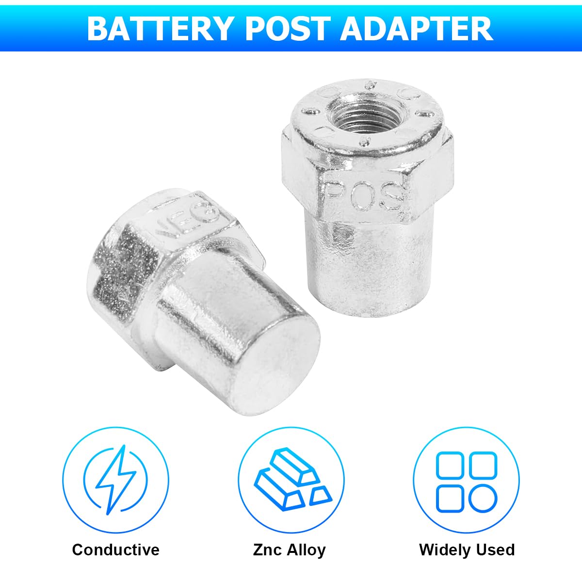 Mandark 4PCS Adaptador de Terminal de Bateria Positivo e Negativo em Liga de Zinco para Veículos - Conector Universal para SUV com Rosca Fêmea de 3/8″ - Acessórios Automotivos