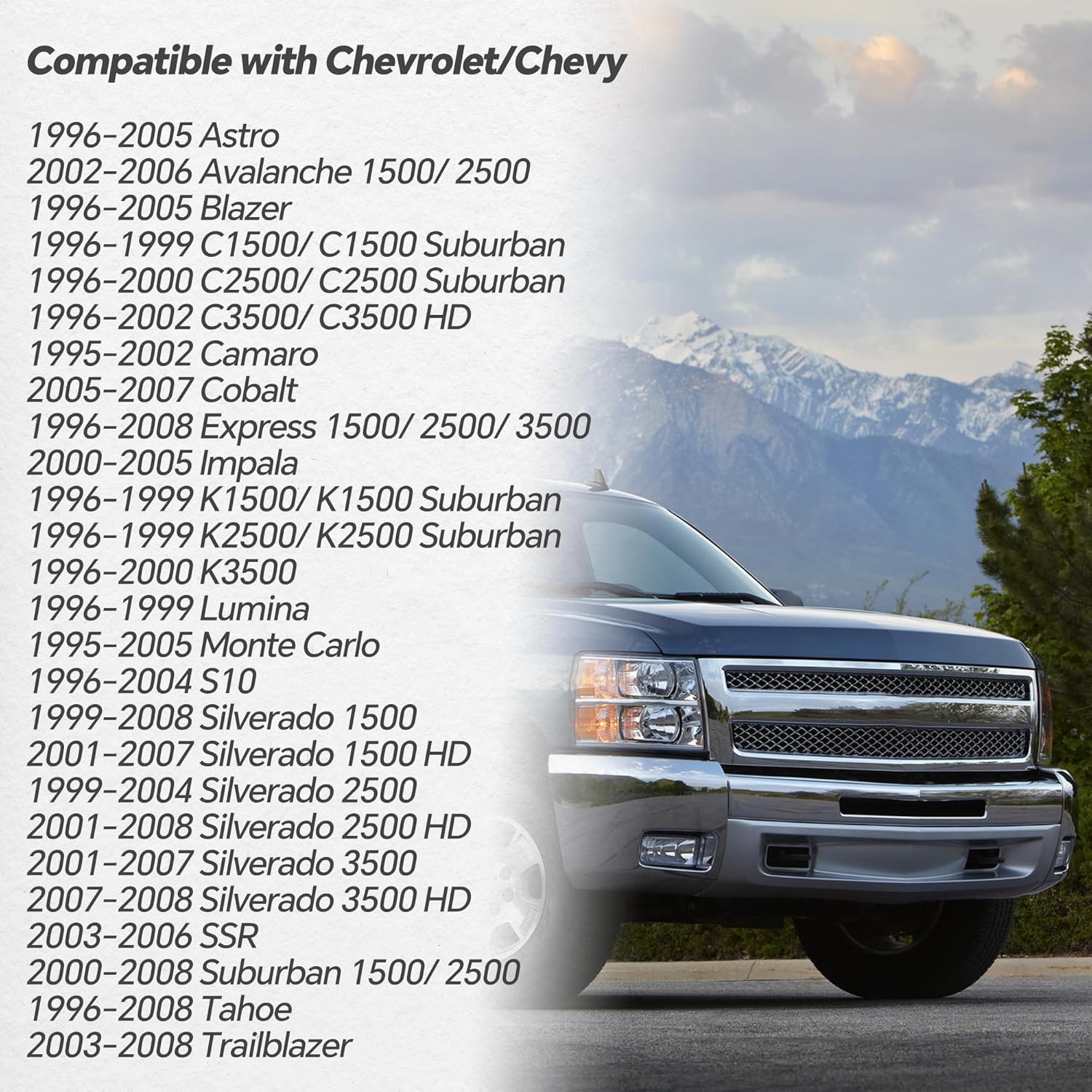 – Chevrolet/Chevy: 96-05 Astro, 02-06 Avalanche, 95-02 Camaro, 99-08 Silverado 1500, entre outros.