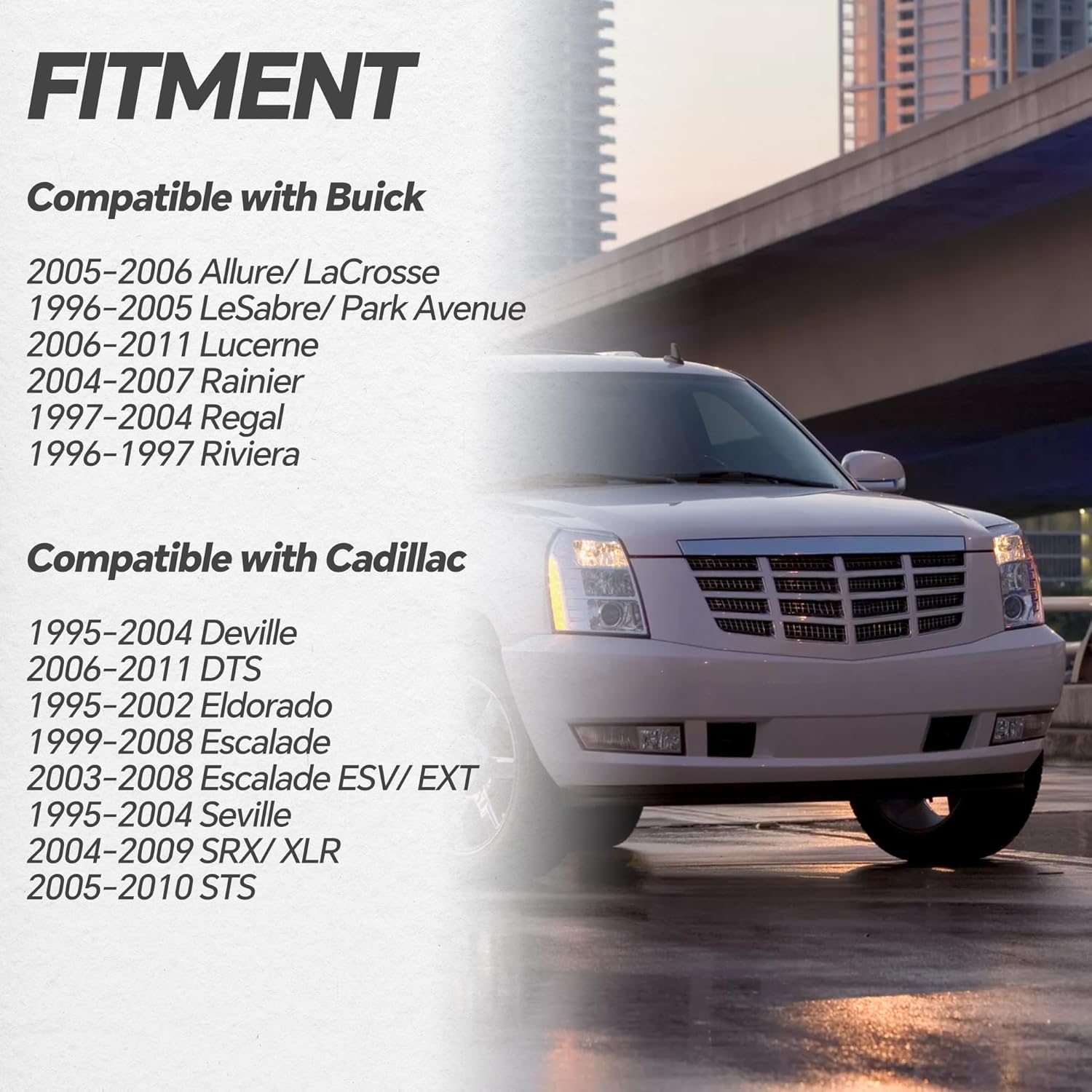 – Cadillac: 95-04 Deville, 99-08 Escalade, 05-10 STS.