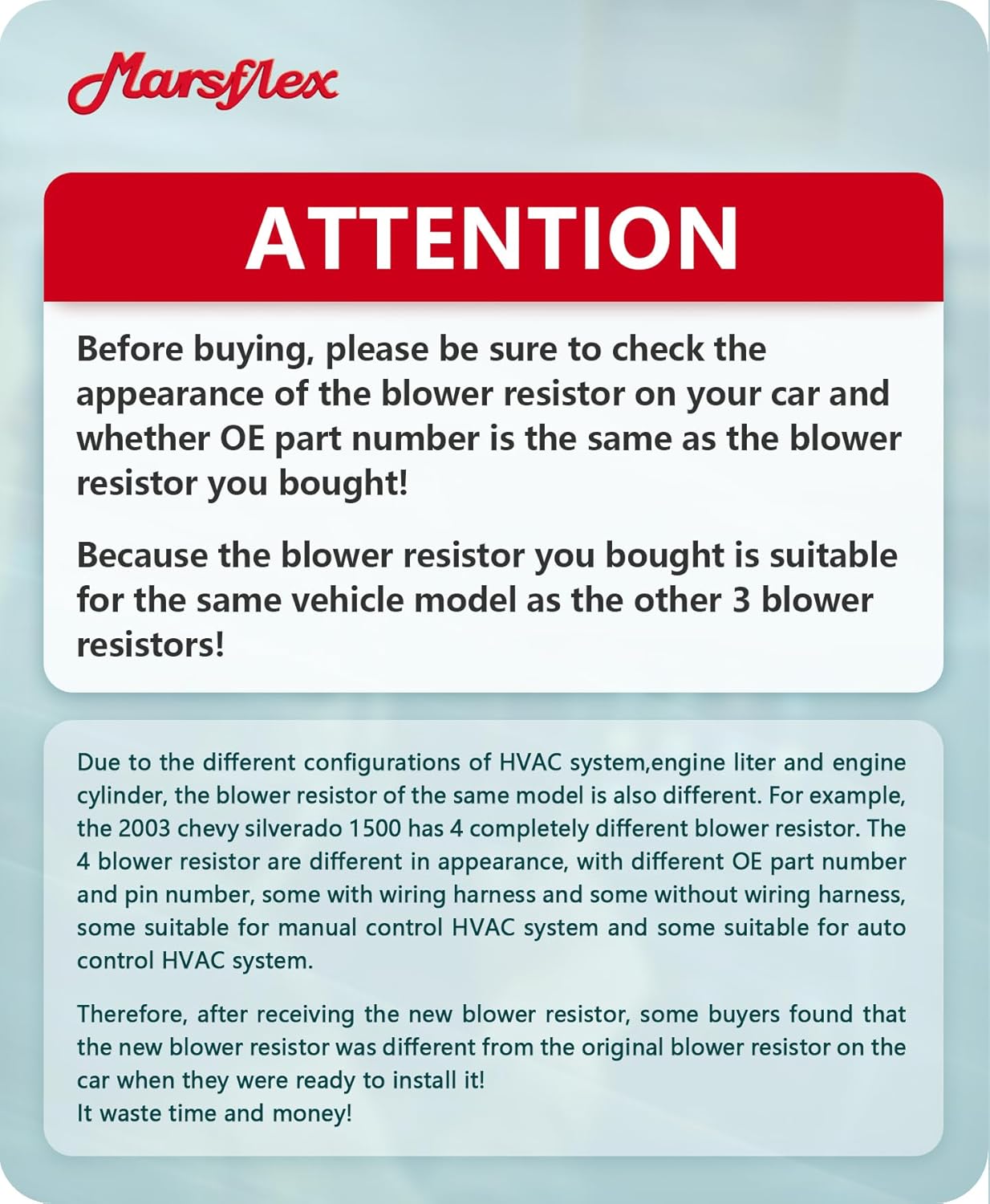 Descrição do Produto: Marsflex Blower Motor Resistor 15-80567
