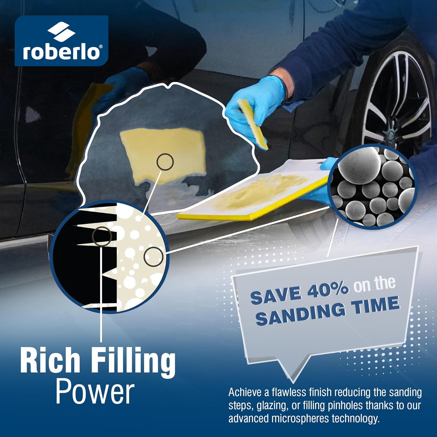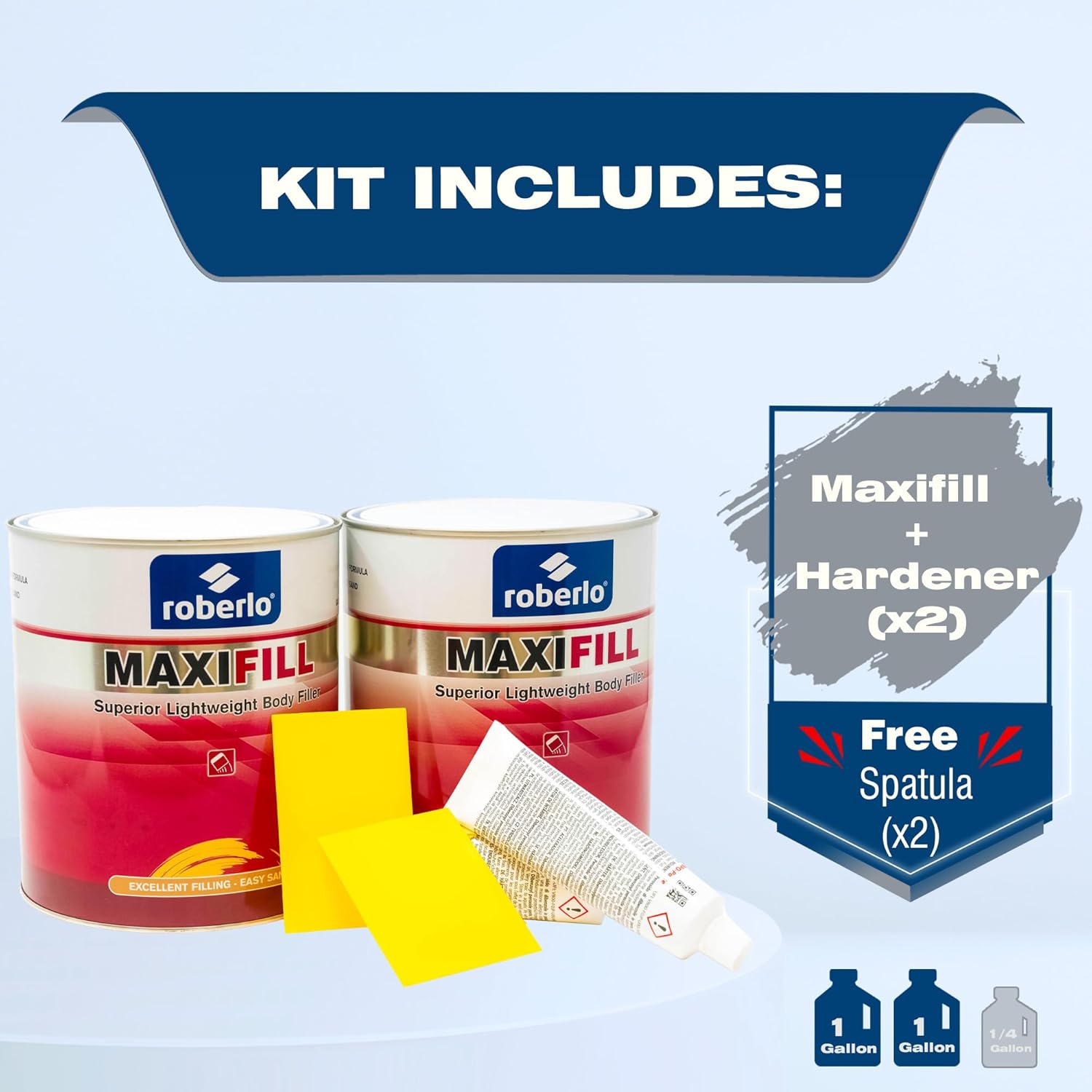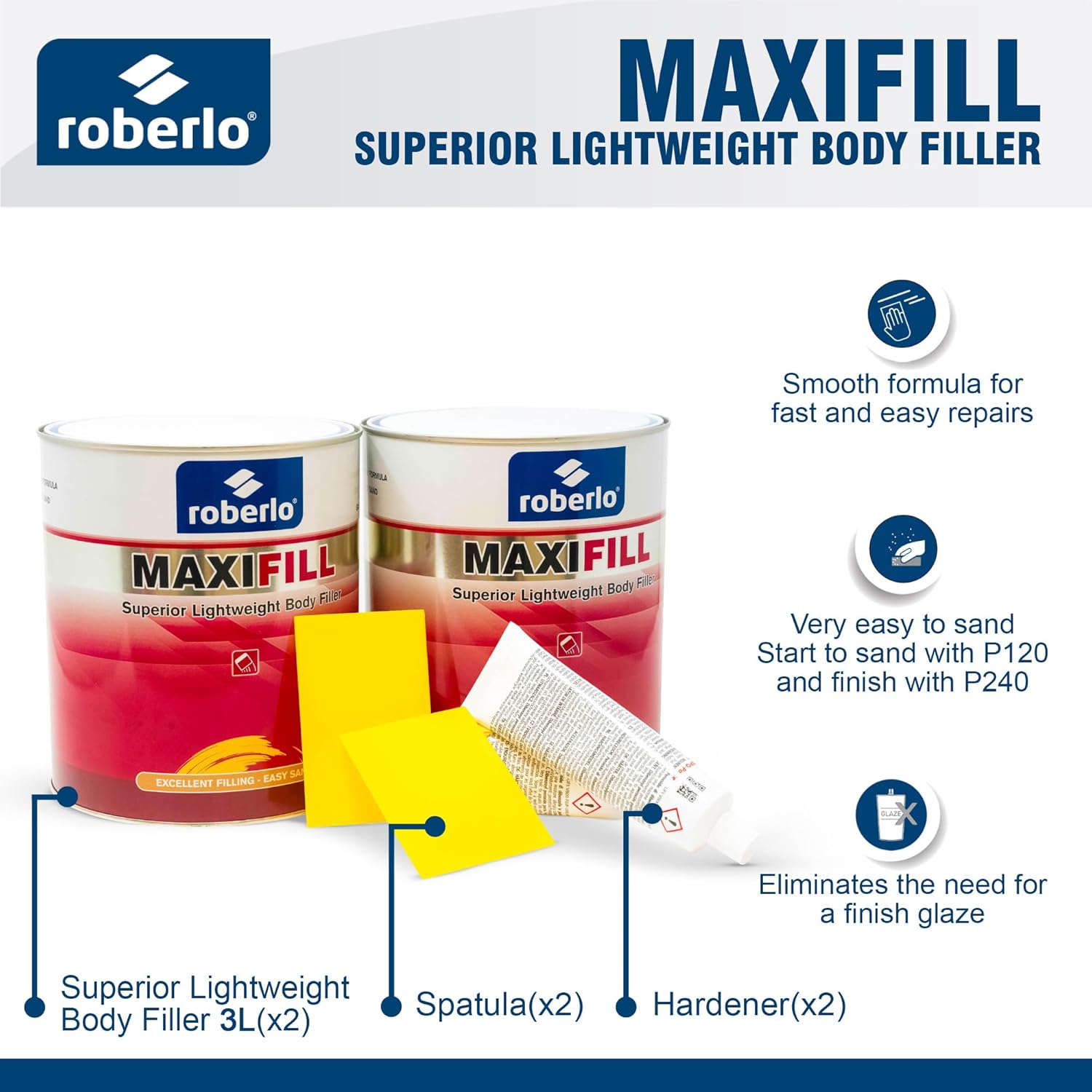 O Roberlo Maxifill Superior Lightweight Body Filler é a solução definitiva para reparos automotivos rápidos e eficientes. Com uma fórmula ultra-leve, este enchimento para carro se destaca pela sua facilidade de aplicação e pelo acabamento liso e profissional que proporciona. Ideal para pequenos e médios amassados e arranhões, o Maxifill restaura a aparência do seu veículo à sua condição original de forma descomplicada.