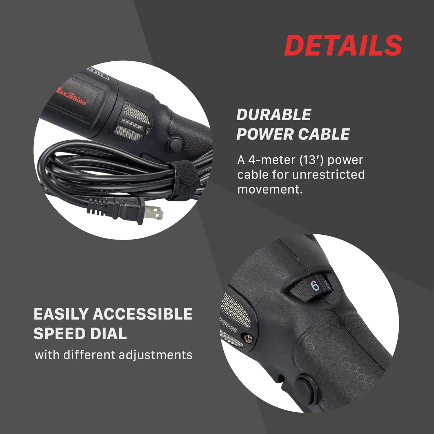 – Motor de 1000W: Garante potência e torque superiores para um detalhamento mais rápido.