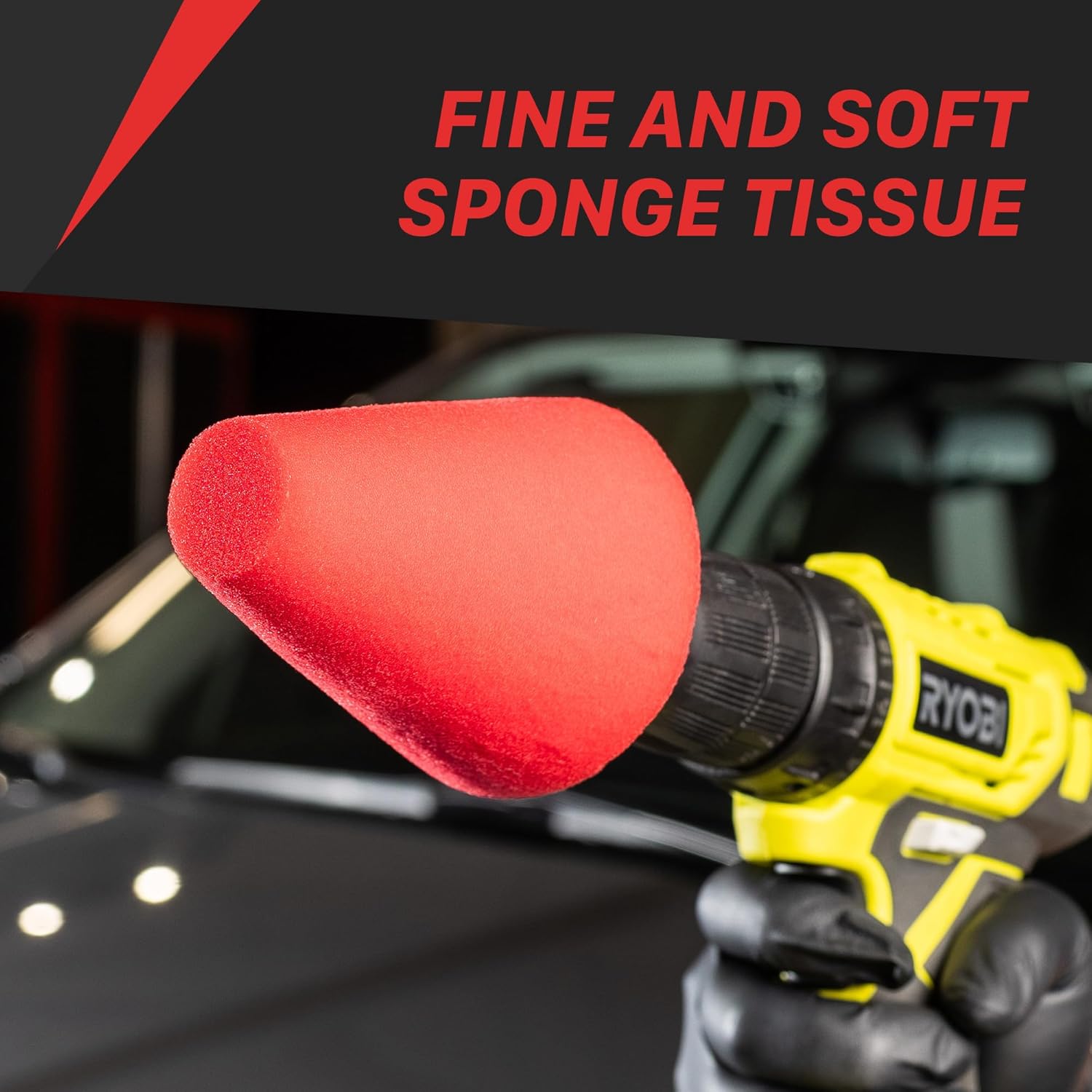 - O design cônico é perfeito para polir superfícies curvas ou qualquer área irregular, garantindo um acabamento impecável.