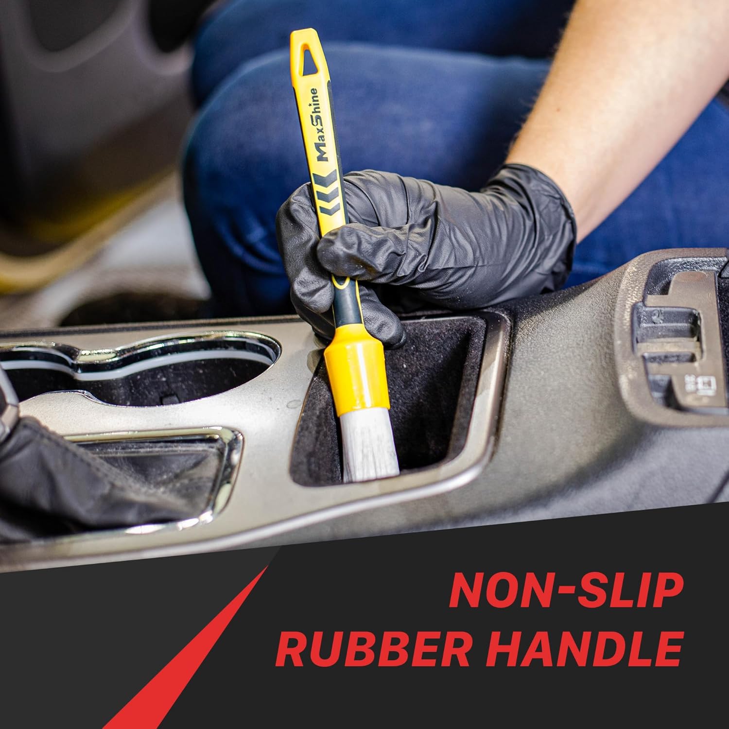 O Maxshine White Classic Detailing Brush Combo é a solução definitiva para quem busca um cuidado meticuloso e eficaz para o seu veículo. Com um design versátil, esta escova é ideal tanto para o interior quanto para o exterior do carro, permitindo que você alcance os locais mais difíceis com facilidade. As cerdas sintéticas, densamente compactadas, são suaves o suficiente para não danificar superfícies delicadas, enquanto são robustas o suficiente para enfrentar as tarefas de detalhamento mais desafiadoras.