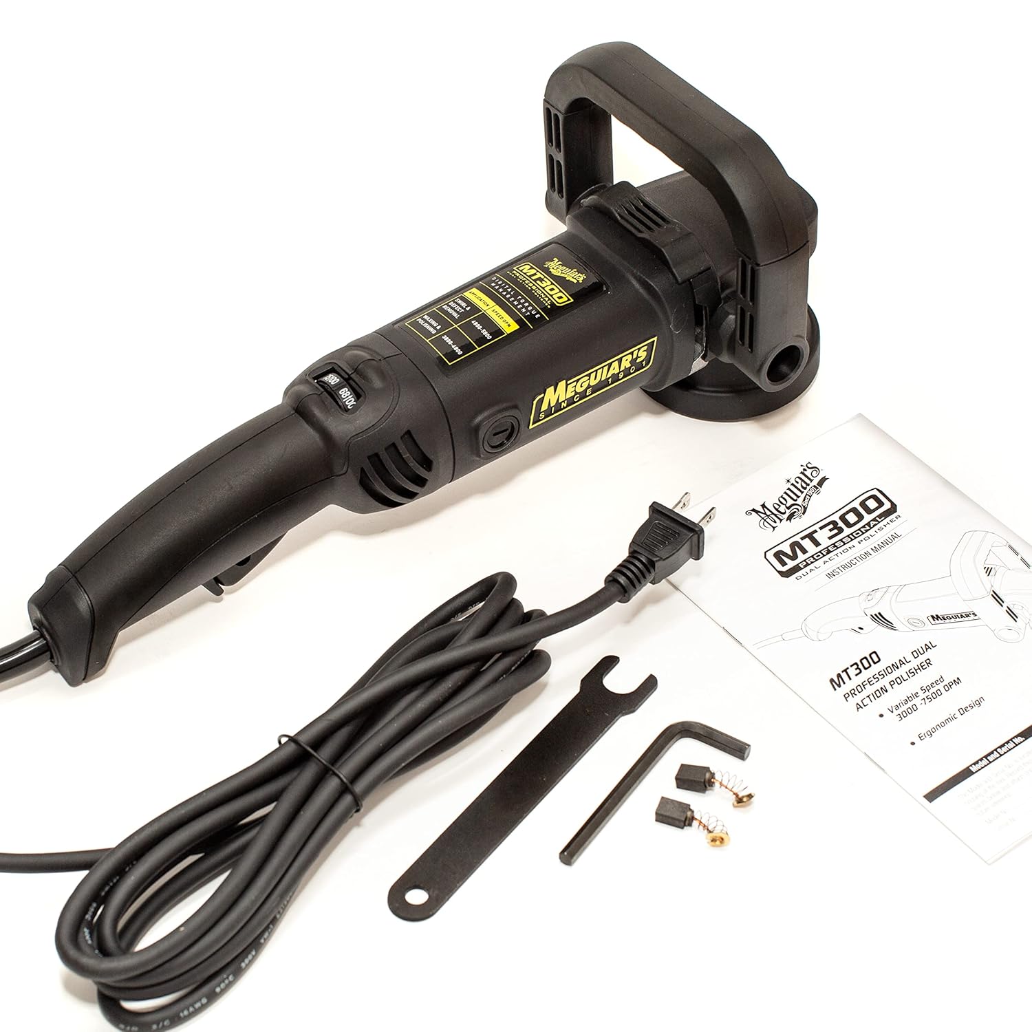 Meguiar’s has added another arrow to their quiver of outstanding Detailing Tools! This item came exactly as advertised and performed exactly as I expected. Great soft start function, very comfortable in my hands, and performed like a professional grade tool should. I ordered the DBP5, 5″ backing plate with it as this is my preferred pad size. I would recommend that you order the backing plate & pad size of your choice as it does not come with a pad or backing plate. Most users have their preferred backing plate size already in their detailing bag but in case you don’t be sure to order a backing plate and pads. I started by washing the car to remove loose contaminant and then moved to the Meguiar’s G1016 Smooth Surface Clay kit to remove any bonded contaminant. I then used the Meguiar’s DMCKIT5 DA Microfiber Correction System Kit to do some defect removal as I had some rather significant scratches in the clear coat. The DA Microfiber Correction Compound used with the New MT300 performed very well, removing the scratches and swirls in my black paint quickly. The finishing wax in the kit put just the right final touches on my paint creating incredible dark, swirl free reflectivity in the paint which took no time at all with the MT300 and the DA Microfiber wax pad. For my next project I will be ordering the new Meguiar’s DFC5, 5″ DA Foam Cutting Disc and the new DFP5, 5″ DA Foam polishing Disk. It will be nice to compare these new foam pads to the DA Microfiber pads that I love. I also love the new backing plates that have the white indicator line that shows you if the pad is still spinning or if you are applying too much pressure while working the machine. I highly recommend Meguiar’s new MT300 Pro Power DA Polisher.