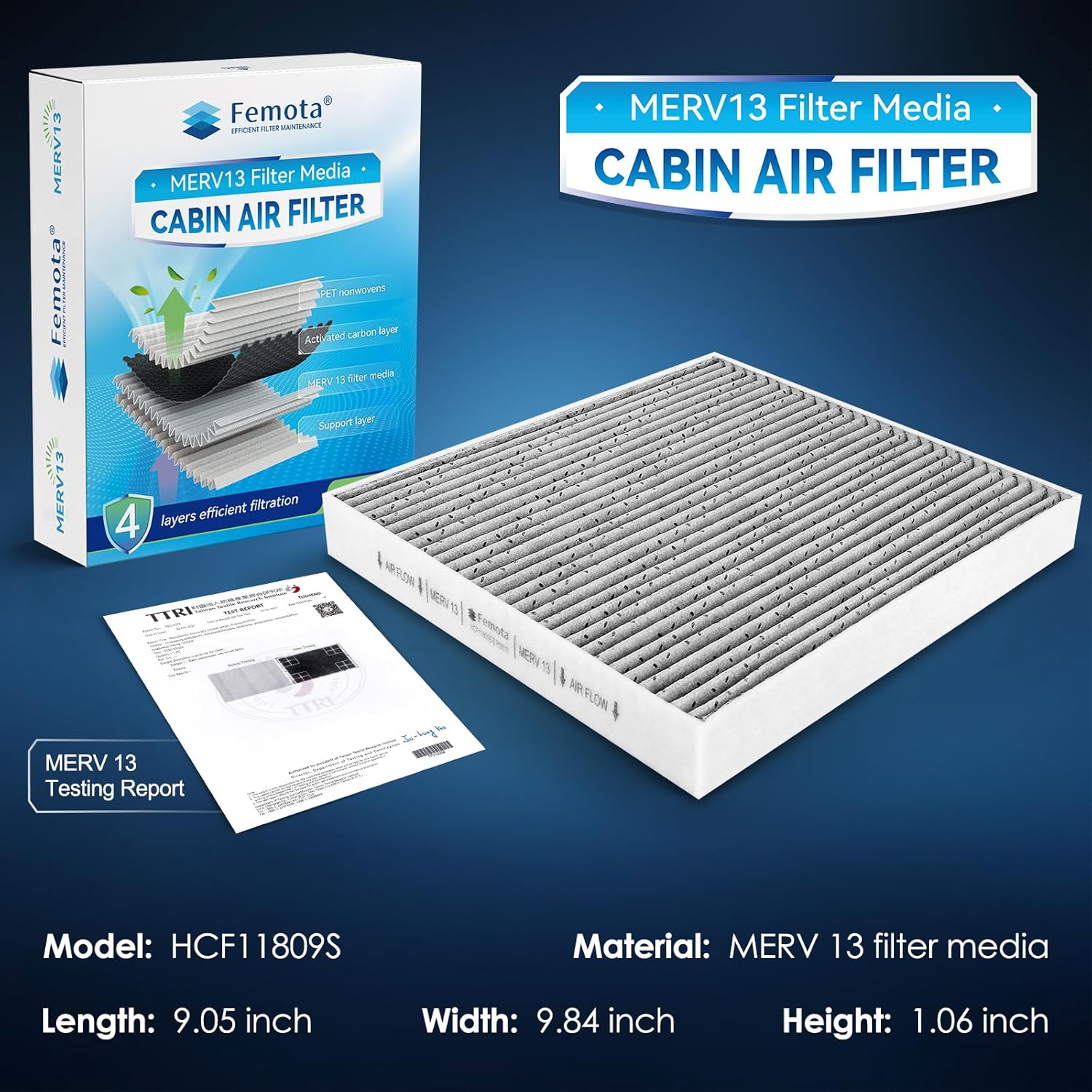 ### Filtro de Ar do Cabine MERV 13 com Carvão Ativado, CF11809