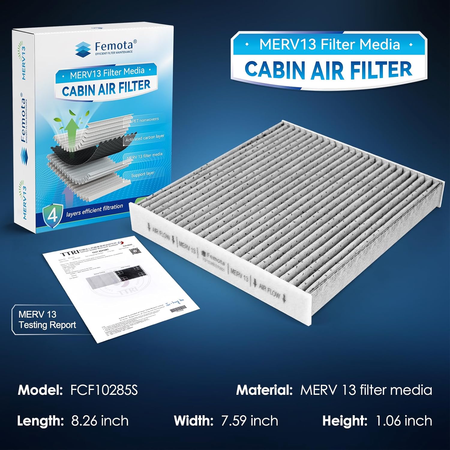 Este filtro é composto por quatro camadas de materiais filtrantes, incluindo a mídia filtrante MERV 13 e carvão ativado premium. Essa combinação garante uma filtragem eficaz, capturando partículas finas e odores indesejados, proporcionando um ar fresco e limpo dentro do veículo.