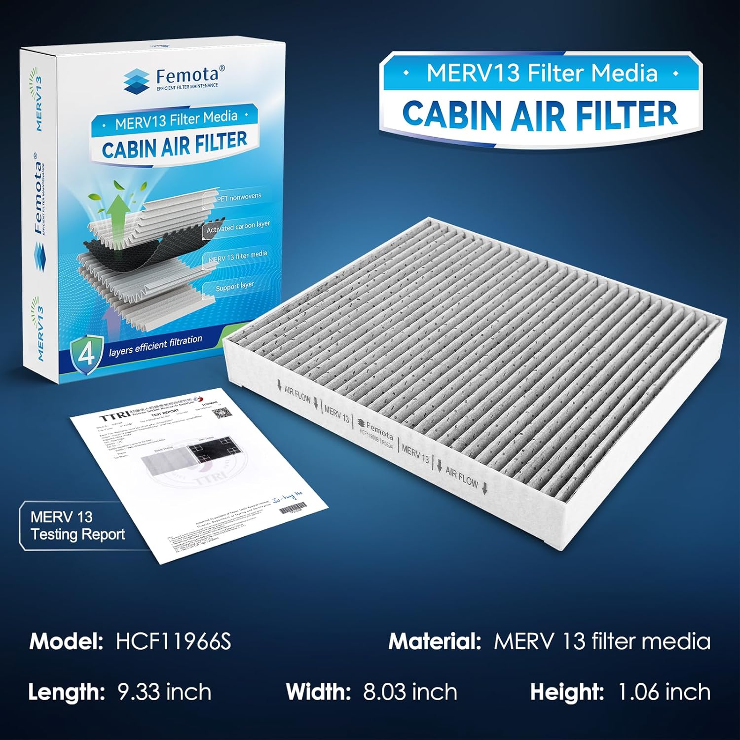 Este filtro é composto por quatro camadas de materiais de filtração, incluindo a mídia filtrante MERV 13 e carvão ativado premium. Essa combinação proporciona uma filtragem eficaz, removendo partículas indesejadas e odores, resultando em um ar mais puro dentro do veículo.