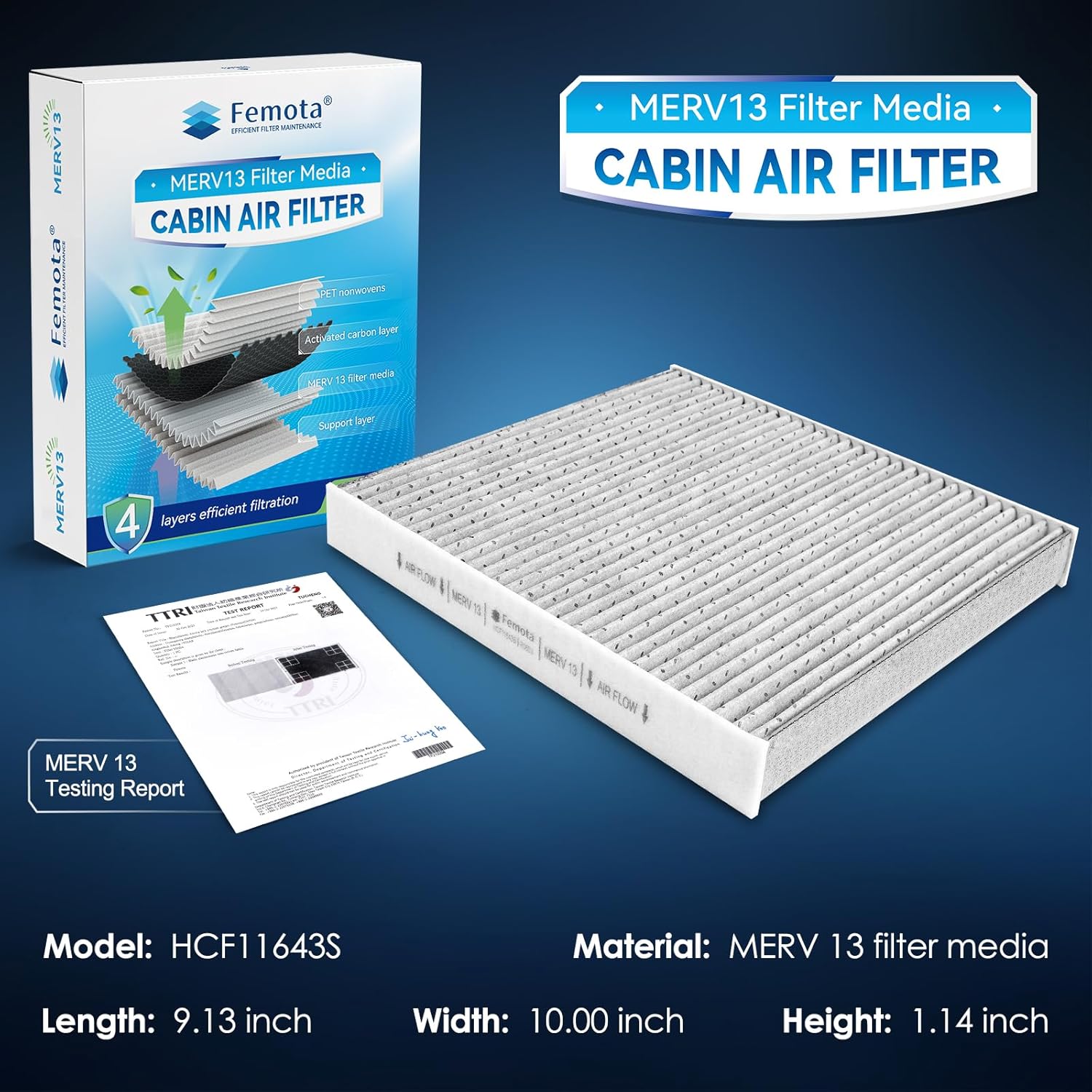 Este filtro é composto por quatro camadas de materiais de filtragem, incluindo a mídia filtrante MERV 13 e carvão ativado premium. Essa combinação proporciona uma filtragem superior, capturando partículas finas e poluentes que podem afetar a qualidade do ar dentro do veículo.