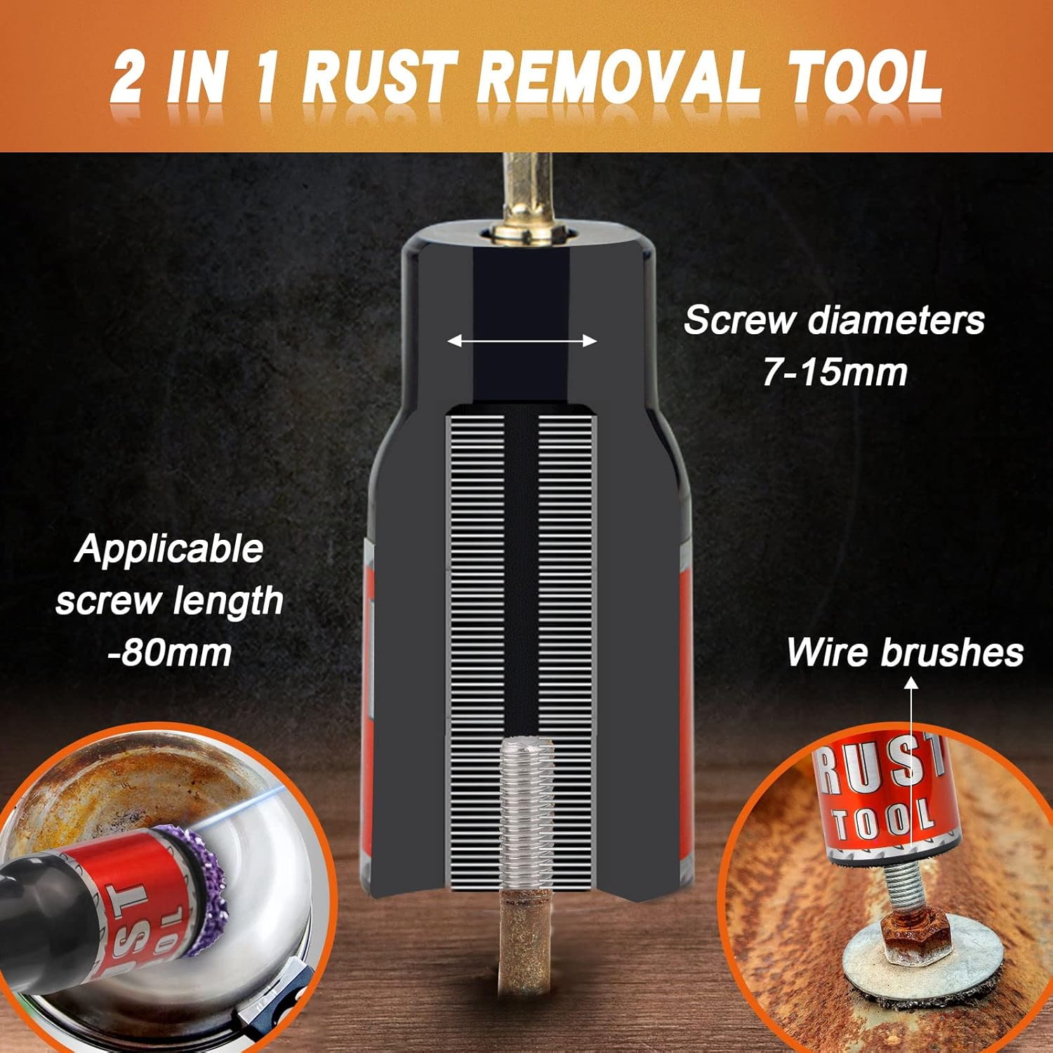 O Metal Rescue Stud Hub Rust Removal Tool é a solução definitiva para a remoção de ferrugem e corrosão em parafusos, porcas e superfícies metálicas. Equipado com uma escova de arame embutida, este acessório é projetado para eliminar eficazmente a ferrugem, garantindo que a manutenção de suas ferramentas e equipamentos seja feita de forma segura e eficiente. A remoção oportuna da ferrugem em parafusos e porcas não apenas prolonga a vida útil dos componentes, mas também evita potenciais riscos à segurança.
