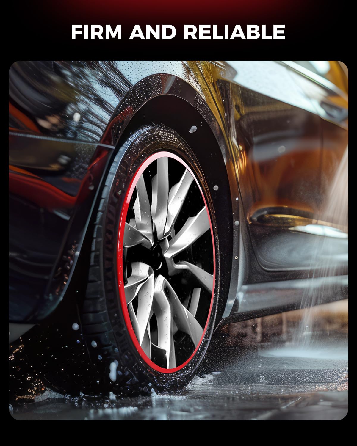 The PARTS4EV Metal Wheel Rim Protector is designed to provide an extra layer of defense for your vehicle’s rims, protecting them from curb rash and other minor damage. This particular set includes four red protectors, each tailored to fit 19-inch wheels.Design and Build QualityThese rim protectors are constructed from high-quality metal, ensuring durability and longevity. The metal construction offers superior protection compared to plastic alternatives, effectively guarding your rims against scrapes and dings from curbs. The red color adds a sporty, stylish accent to your vehicle’s wheels, enhancing the overall aesthetic.InstallationInstallation of the PARTS4EV rim protectors is straightforward and user-friendly. Each strip comes with pre-applied adhesive backing, allowing for a secure attachment to the rims. The protectors are flexible enough to contour to the wheel’s shape, ensuring a snug fit. However, proper surface preparation is crucial to ensure optimal adhesion. Clean the rims thoroughly to remove any dirt or grease before applying the protectors.PerformanceOnce installed, the PARTS4EV rim protectors perform admirably. They provide a robust shield against curb impacts, effectively preventing scratches and scuffs. The metal material holds up well under various weather conditions, resisting corrosion and maintaining its integrity over time. Additionally, the protectors stay securely in place even during high-speed driving, thanks to the strong adhesive.AestheticsIn terms of aesthetics, the red rim protectors add a striking contrast to the wheels, particularly on vehicles with darker rims. They contribute to a sporty and customized look without being overly flashy. The protectors maintain their color and finish, resisting fading even with prolonged exposure to sunlight and harsh weather.Value for MoneyPriced competitively, the PARTS4EV Metal Wheel Rim Protectors offer excellent value for money. The durable metal construction and effective protection they provide justify the cost, making them a worthwhile investment for car enthusiasts looking to preserve the appearance and condition of their wheels.