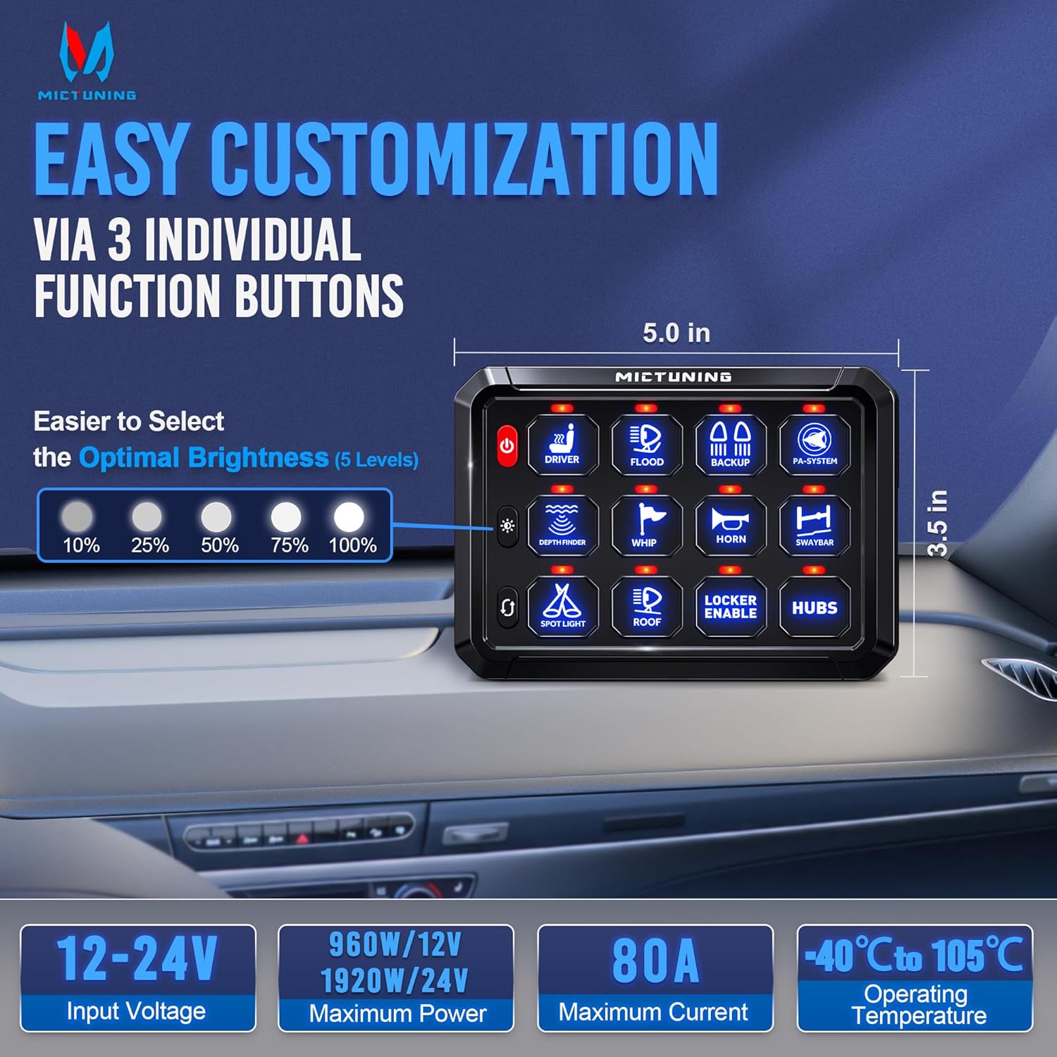 Descrição do Produto: MICTUNING 12 Gang Switch Panel P1S-B12