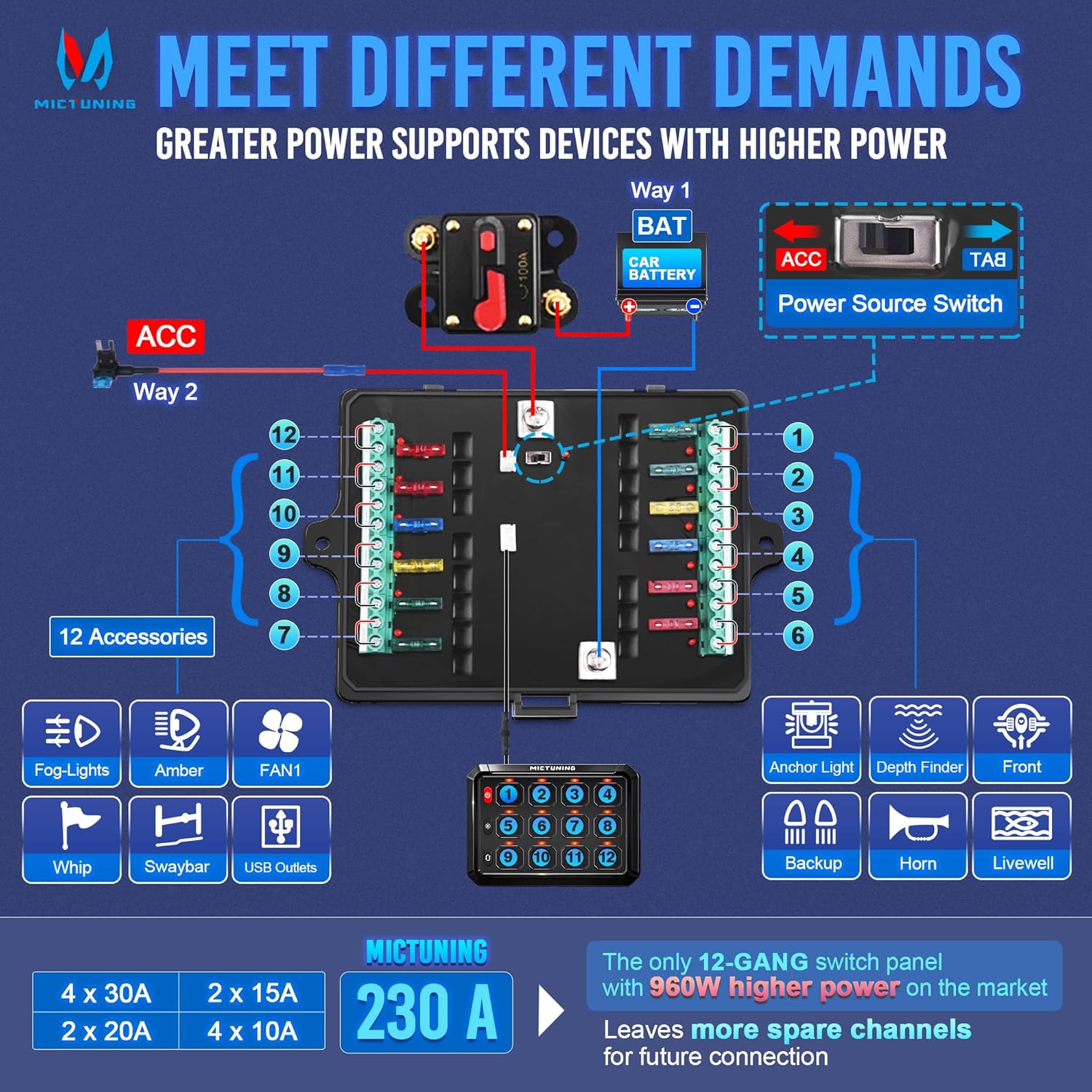 – Modelo: MICTUNING 12 Gang Switch Panel P1S-B12