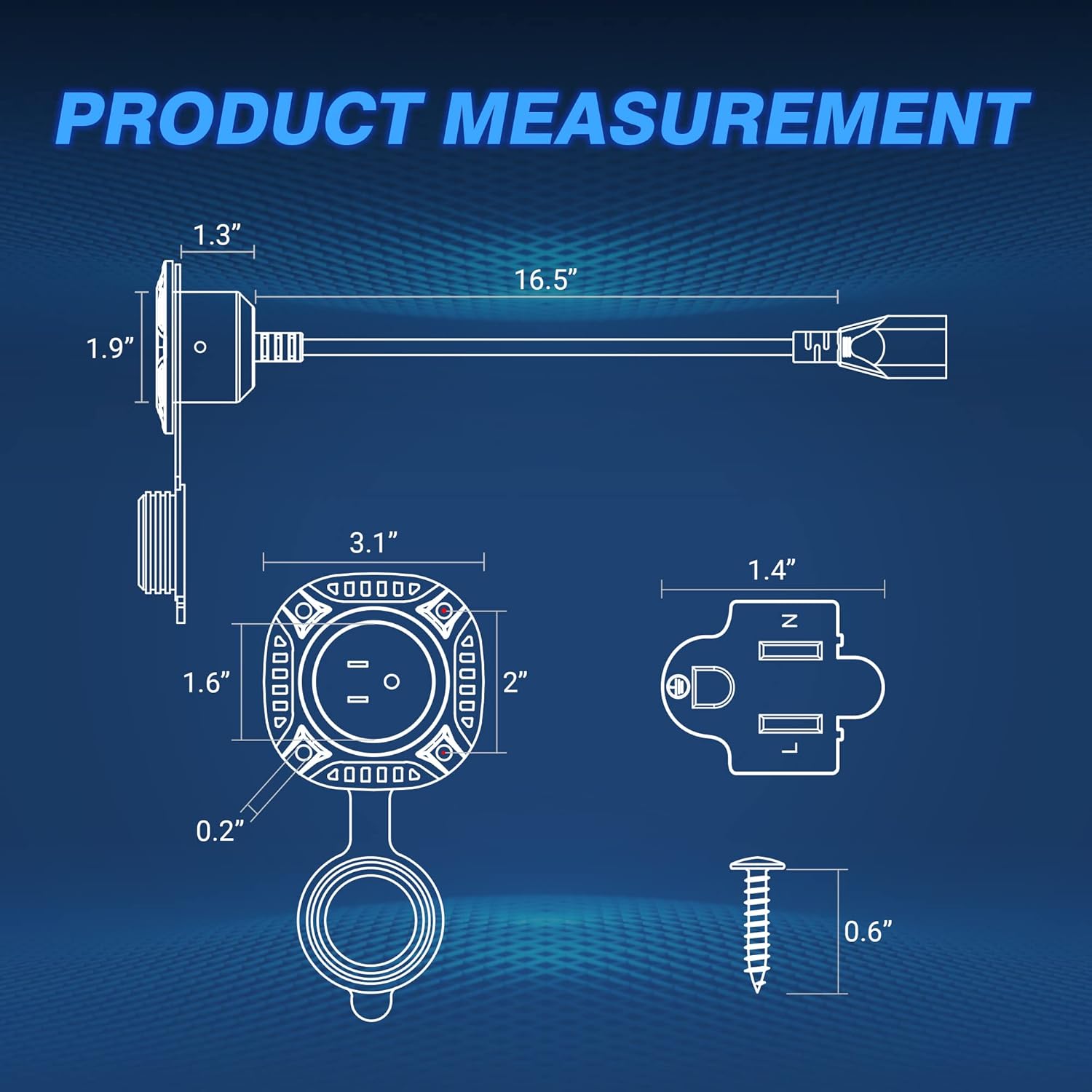 Com um cabo de extensão integrado de 16 polegadas, você terá flexibilidade suficiente para conectar diretamente à fonte de energia existente, sem complicações. A instalação é simples e rápida, sem necessidade de fiação adicional ou modificações no cabo. Basta fazer um furo de 2 polegadas e fixar o plugue com 4 parafusos, resultando em uma aparência OEM limpa e profissional.