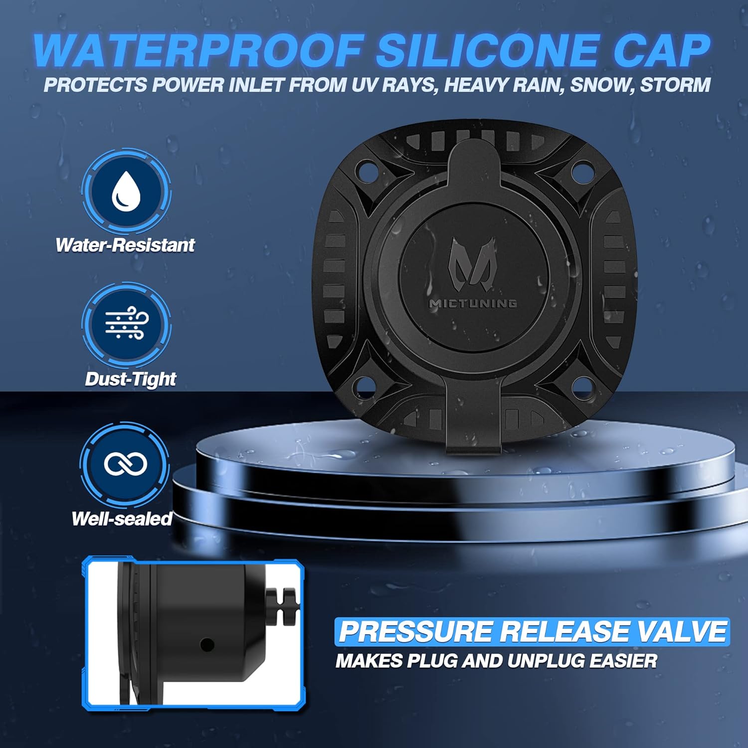 A versão aprimorada do MICTUNING apresenta um design inovador, com a saída do cabo de energia posicionada no centro da parte traseira. Isso não só melhora a estética, mas também torna a instalação mais prática e eficiente. A tampa resistente à água, com encaixe seguro, protege o plugue contra as intempéries, incluindo neve, gelo e chuvas congelantes, tornando-o perfeito para os rigorosos invernos do Colorado Ocidental.
