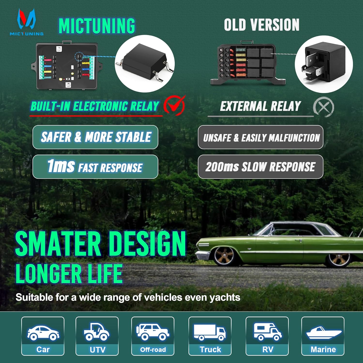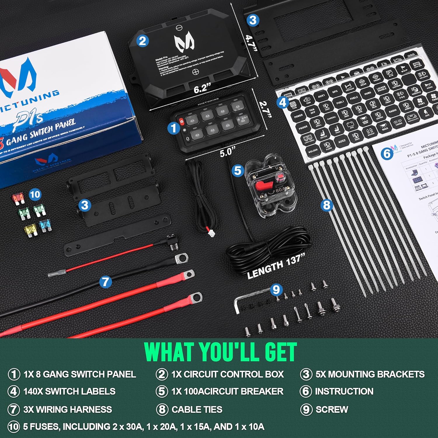 O MICTUNING 8 Gang Switch Panel P1S-G08 é a solução definitiva para quem busca um painel de controle auxiliar eficiente e prático para veículos como campers, RVs, ATVs, SUVs, UTVs, caminhões, carros e embarcações. Com um design inovador e recursos avançados, este painel de 5 polegadas é equipado com 8 interruptores que oferecem uma experiência de uso superior em comparação com outros produtos disponíveis no mercado.