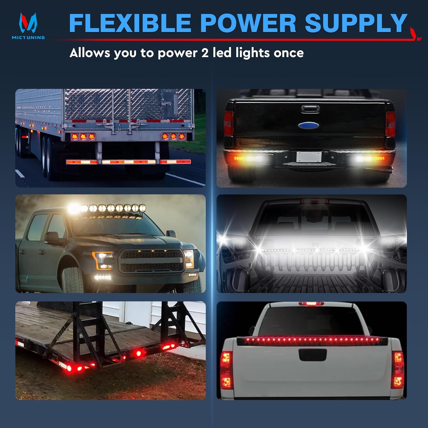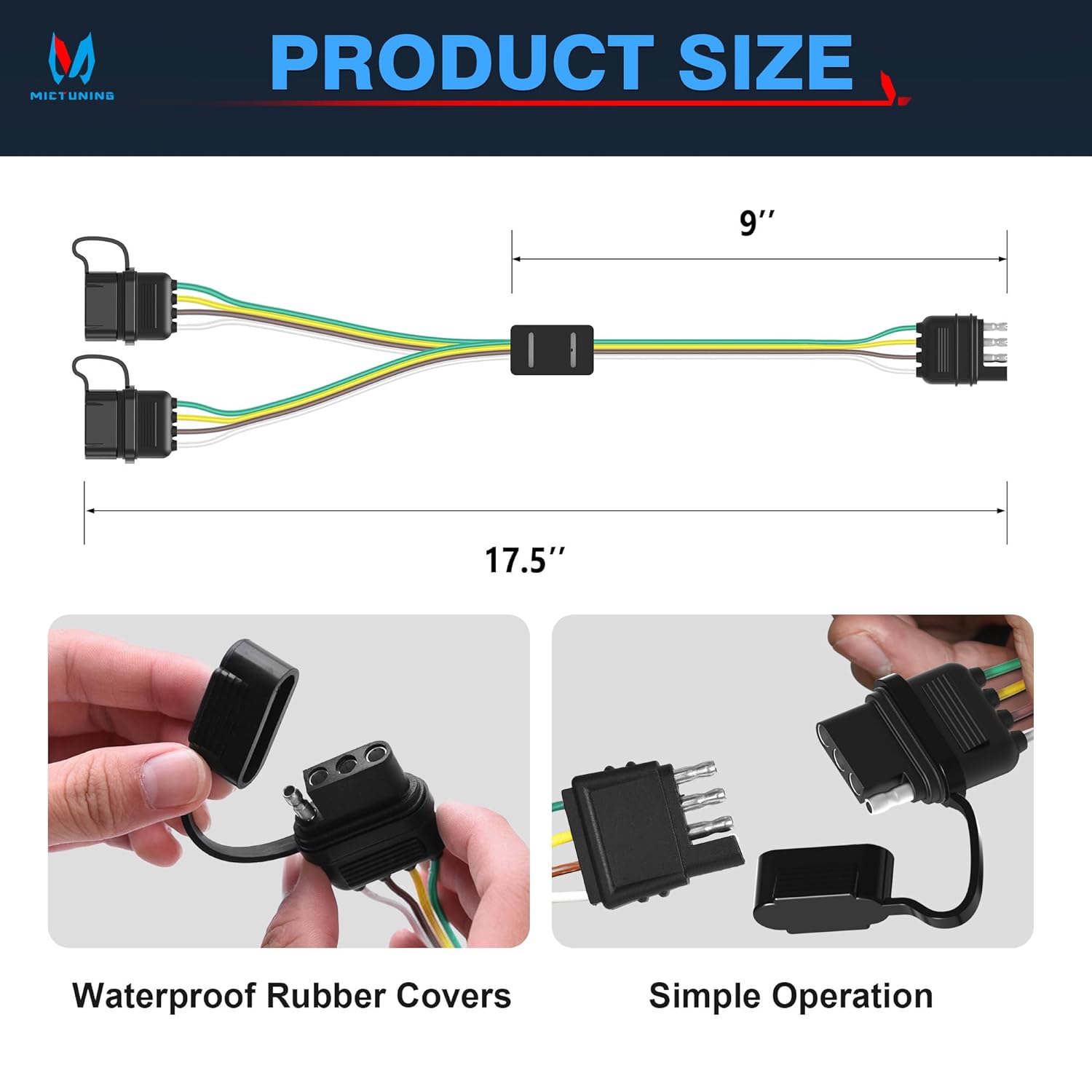 O MICTUNING Universal 4 Way Flat Y-Splitter é a solução ideal para quem busca uma conexão eficiente e segura para luzes de trailers e barras de luz traseiras. Este adaptador de extensão foi projetado com um design especial que se adapta perfeitamente a luzes LED de trailers, barras de luz de caçamba e outras aplicações, garantindo uma instalação prática e sem complicações.